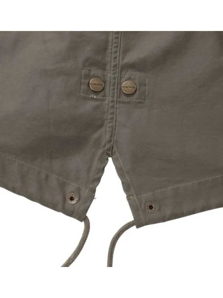フルジップ・スナップボタン/比翼仕立て/フード(調節ひも有)/サイドフラップポケット/袖口アジャストボタン/ウエスト調節ひも/裾フィッシュテール(調節ひも有)/スタンドカラー/M-51