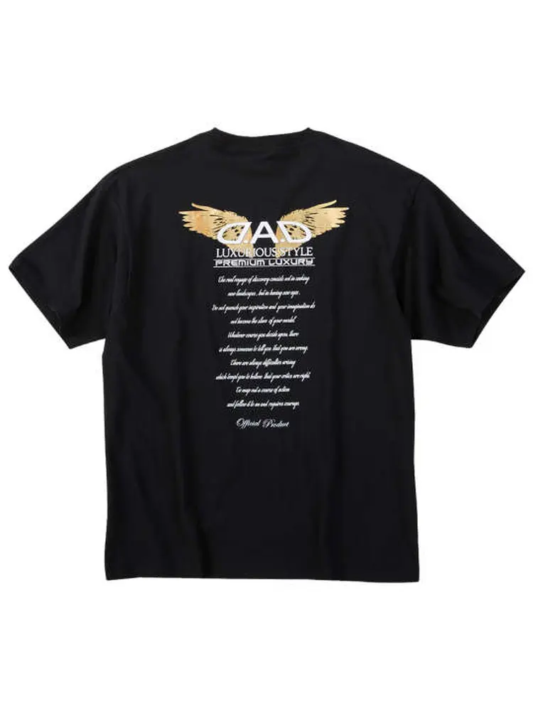 【D.A.D】箔プリント半袖Tシャツ(バックプリント) *カタログ商品 大きいサイズ(ブラック)