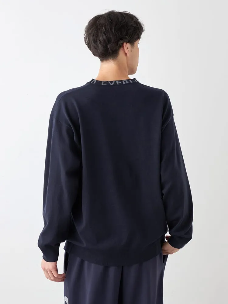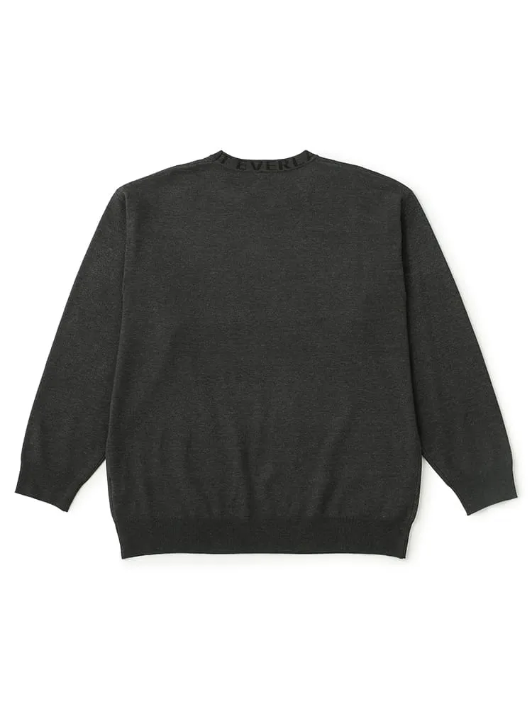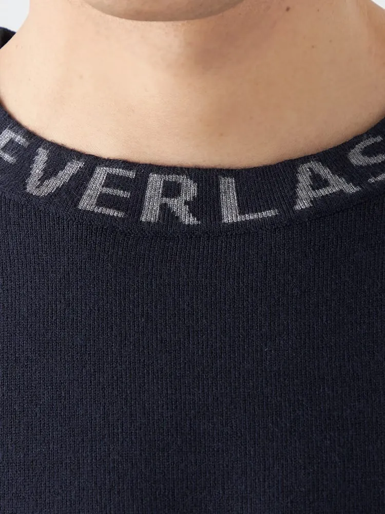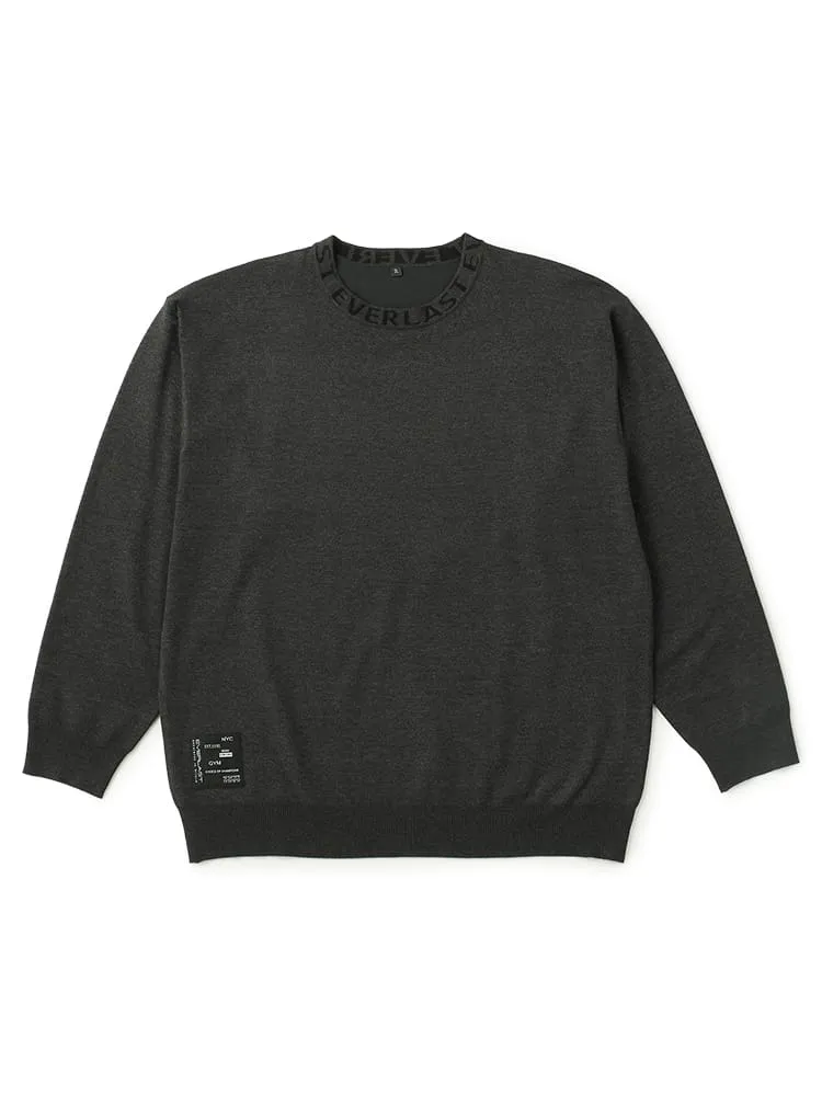 EVERLASTクルーネック襟ジャガードニット。ポリエステル63%レーヨン26%ナイロン11%の素材のニット商品になります。1枚で着ても、インナーとして着用しても活躍する1枚です。この冬のコーディネートに入れておきたい一品。襟元のジャガードプリントがデザインの決め手です