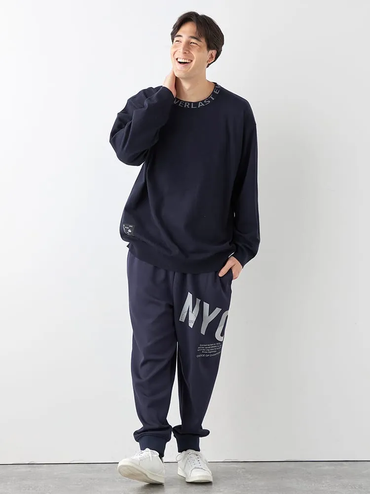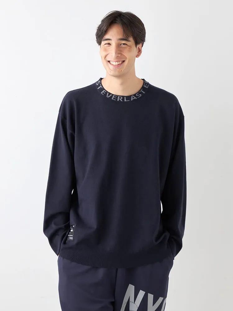 【EVERLAST(エバーラスト)】クルーネック襟ジャガードニット(ブラック)