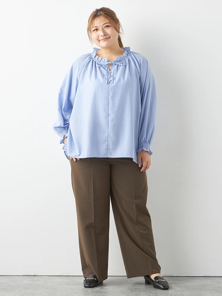 【Viola(ビオラ)】フリルリボンブラウス 大きいサイズ レディース