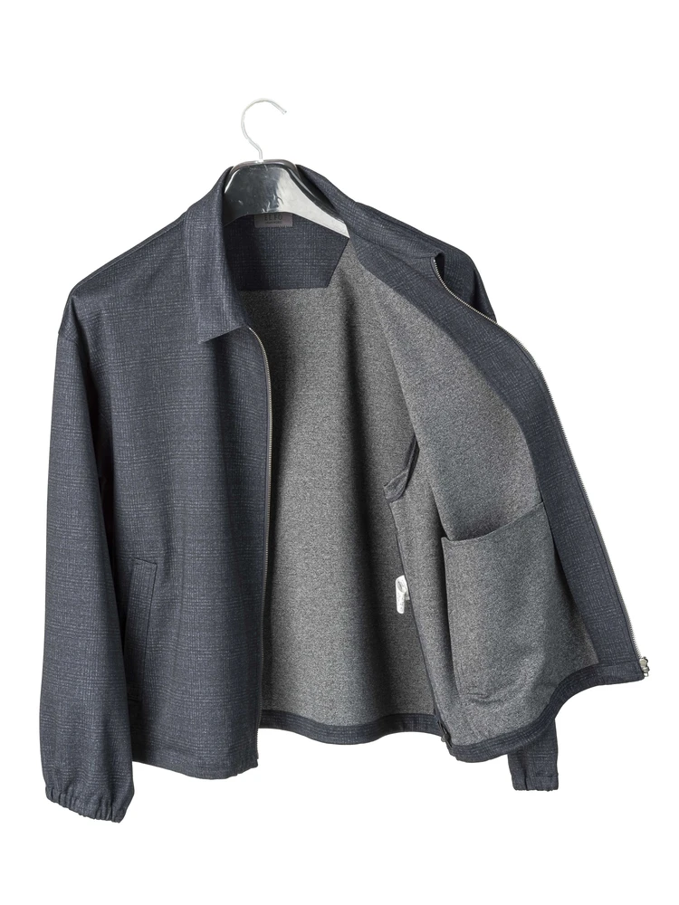 ウール調プリントが特徴のニット素材使用ストレッチ、防シワ、ウォッシャブル、消臭テープ、静電気防止テープを使用した多機能な1着です。