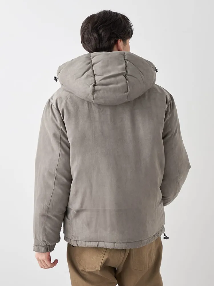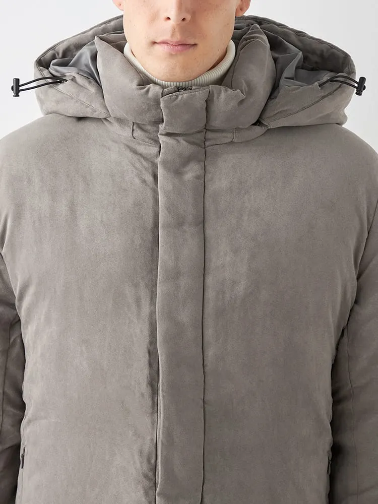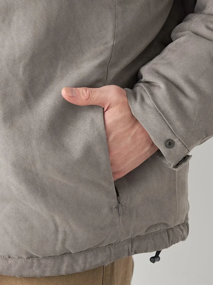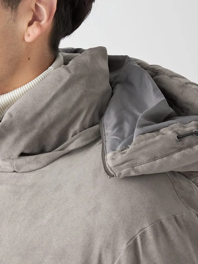 【ルイシャブロン】ポリスエードフード脱着ハーフコート 大きいサイズ(オフホワイト)