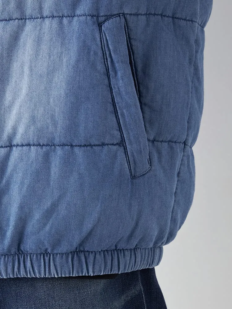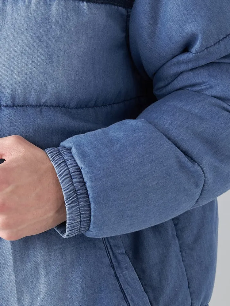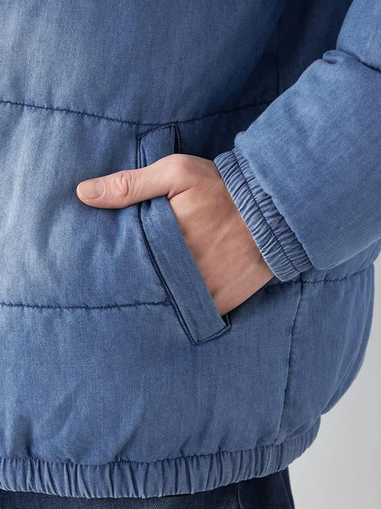 【WILDER&WEST】ウォッシュドデニム中綿キルトブルゾン(ネイビー)