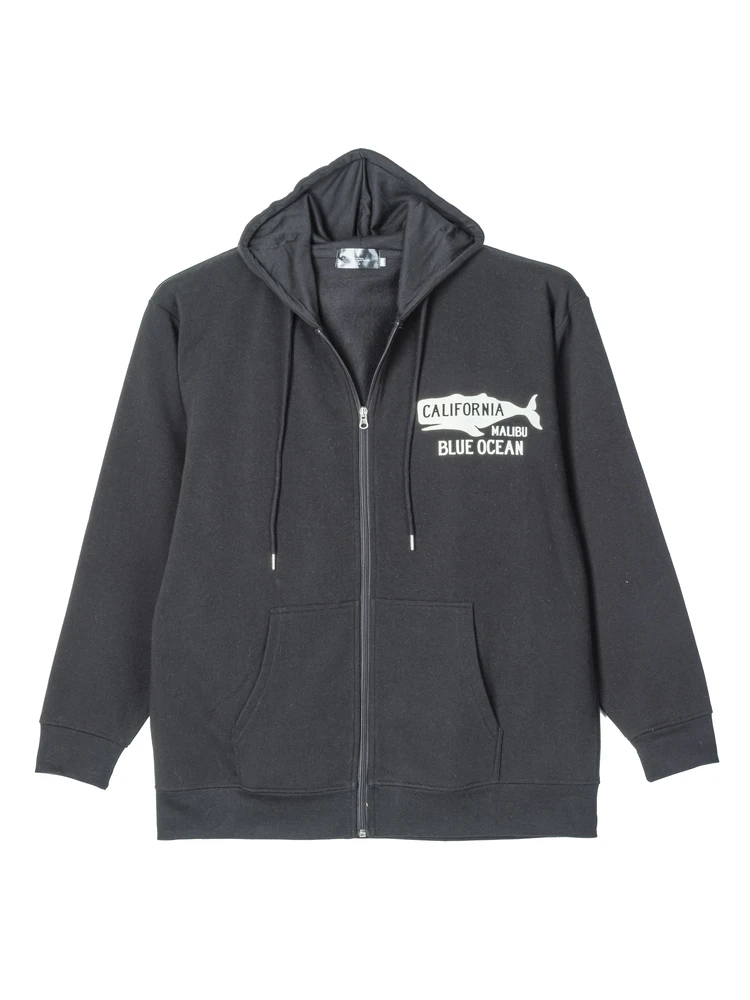 裏起毛FZパーカー(クジラ) 大きいサイズ(ブラック)
