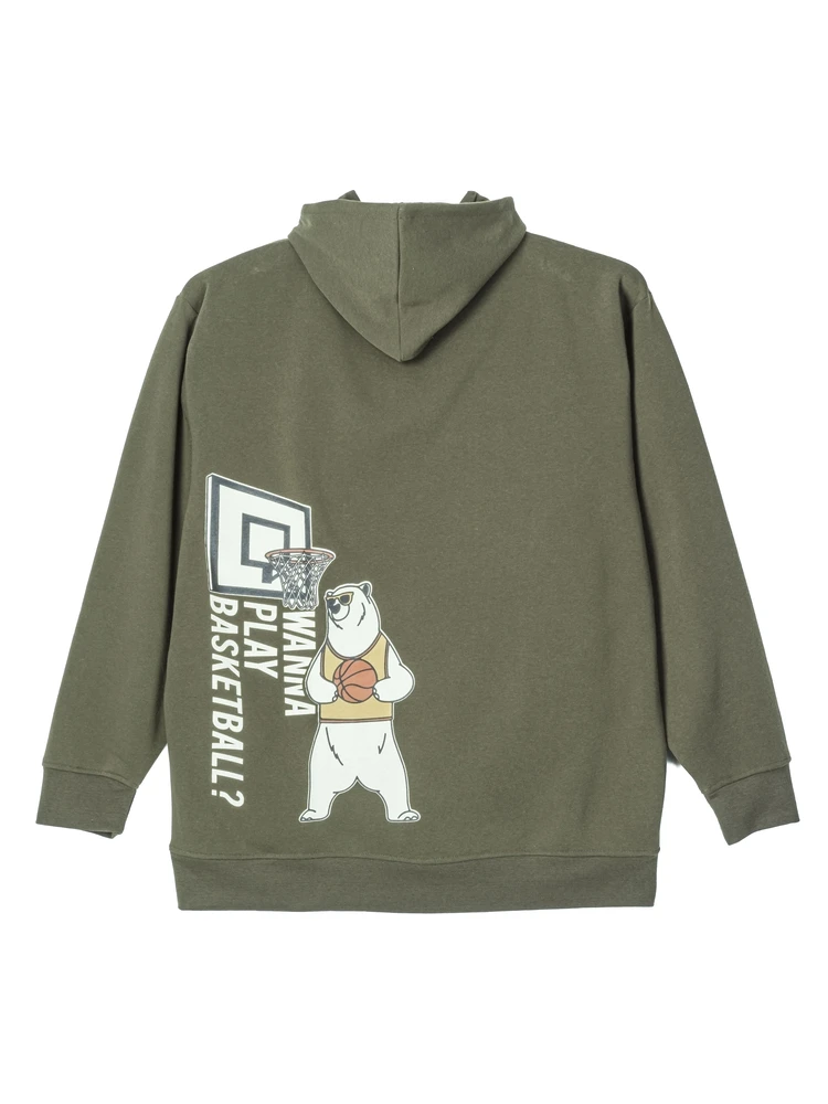 裏起毛パーカー(バスケットベアー) 大きいサイズ(カーキー)