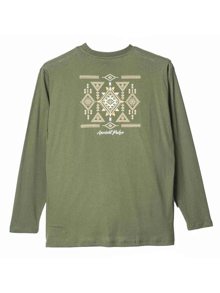 長袖プリントTシャツ(ネイティブ) 大きいサイズ(C.グレー)
