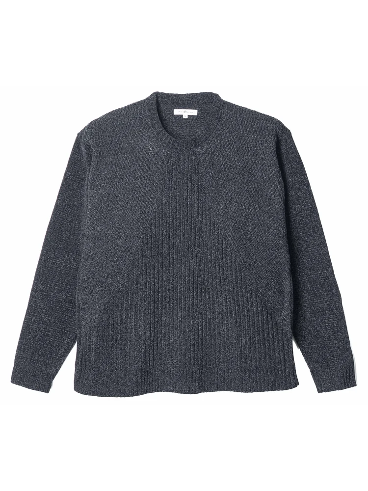 膨らみ、柔らかさ、あたたかさを併せ持つモール素材をベースに、同系色で柄表現をした使いやすいセーターです。