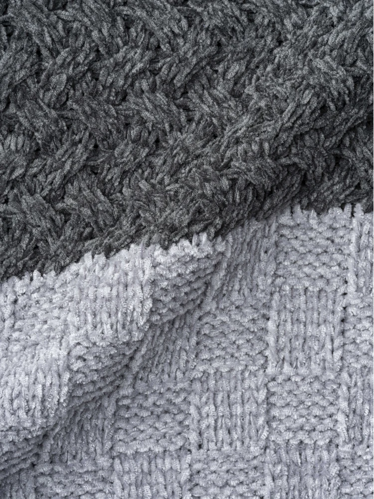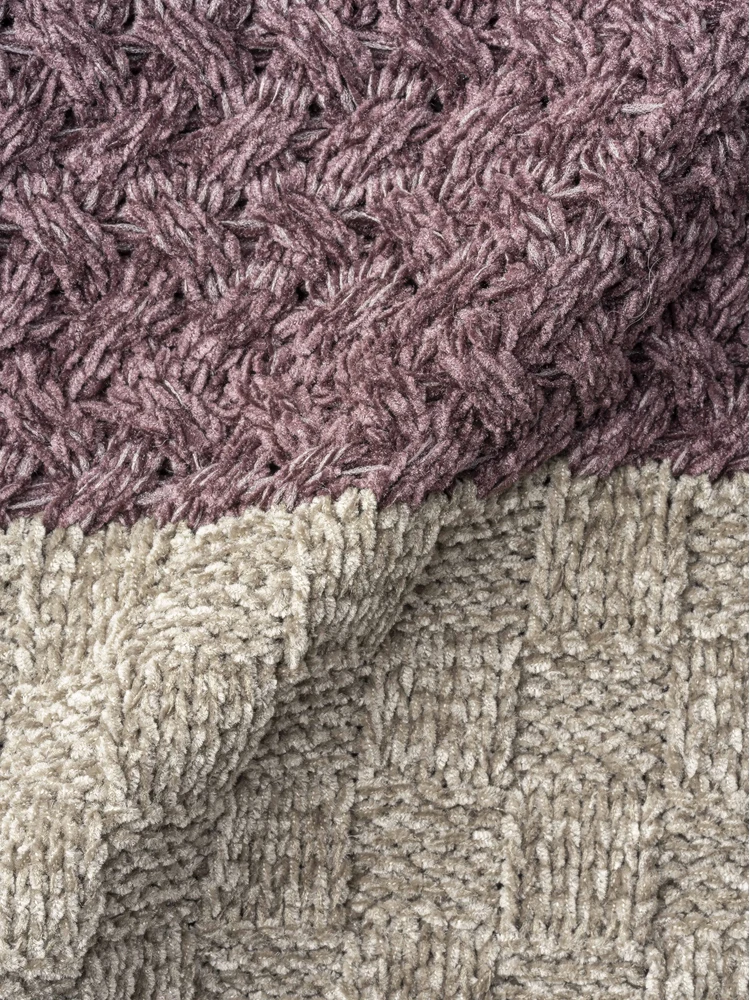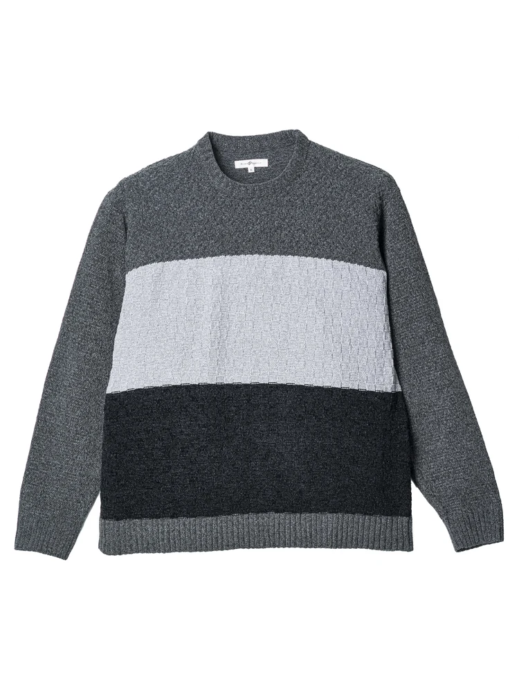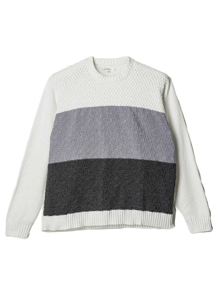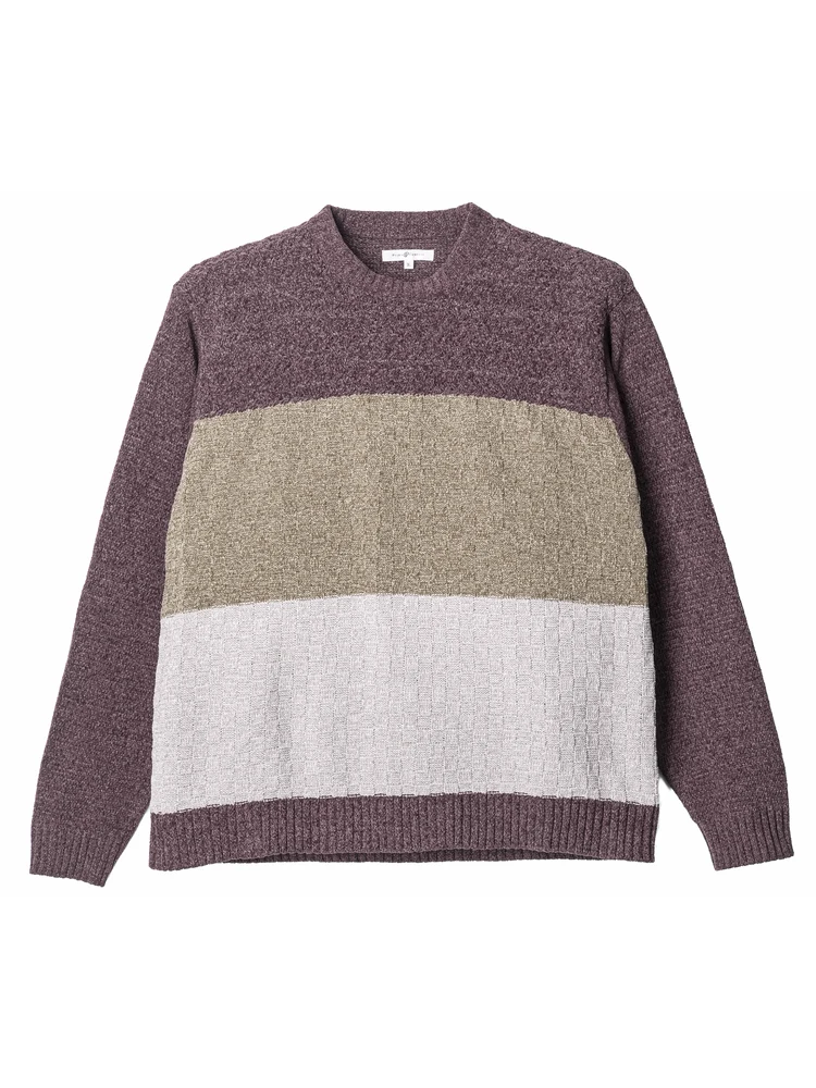 膨らみ、柔らかさ、あたたかさを併せ持つモール素材をベースに、大胆な切替配色のデザインセーターです。