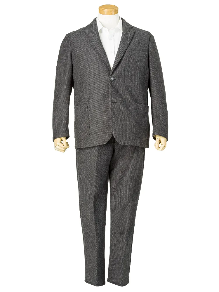 太い綾目とざっくりとした風合が特徴のツイーディーなニット素材。