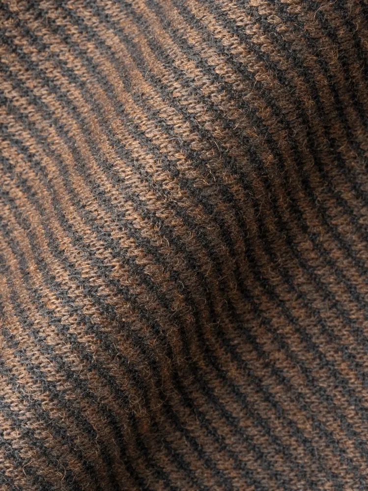 最近のトレンドでもあるウールに見える合繊素材をニットで開発。