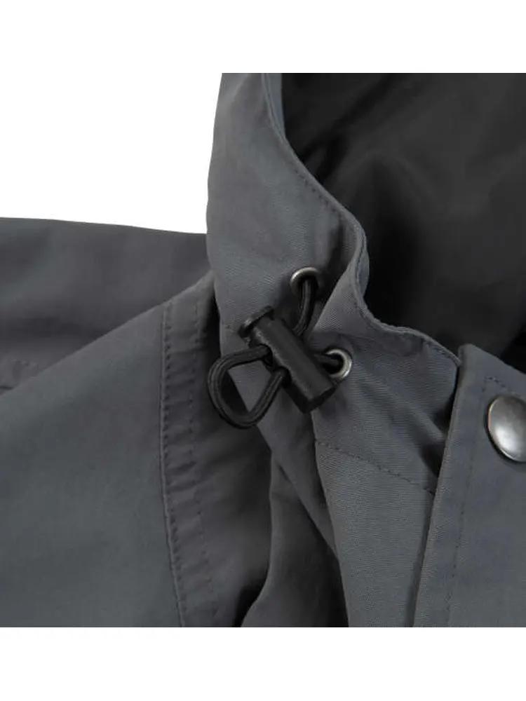フルジップ/比翼仕立て/スタンドカラー/フード(調節ひも有)/胸・サイドポケット/スナップボタン/袖口マジックテープ有