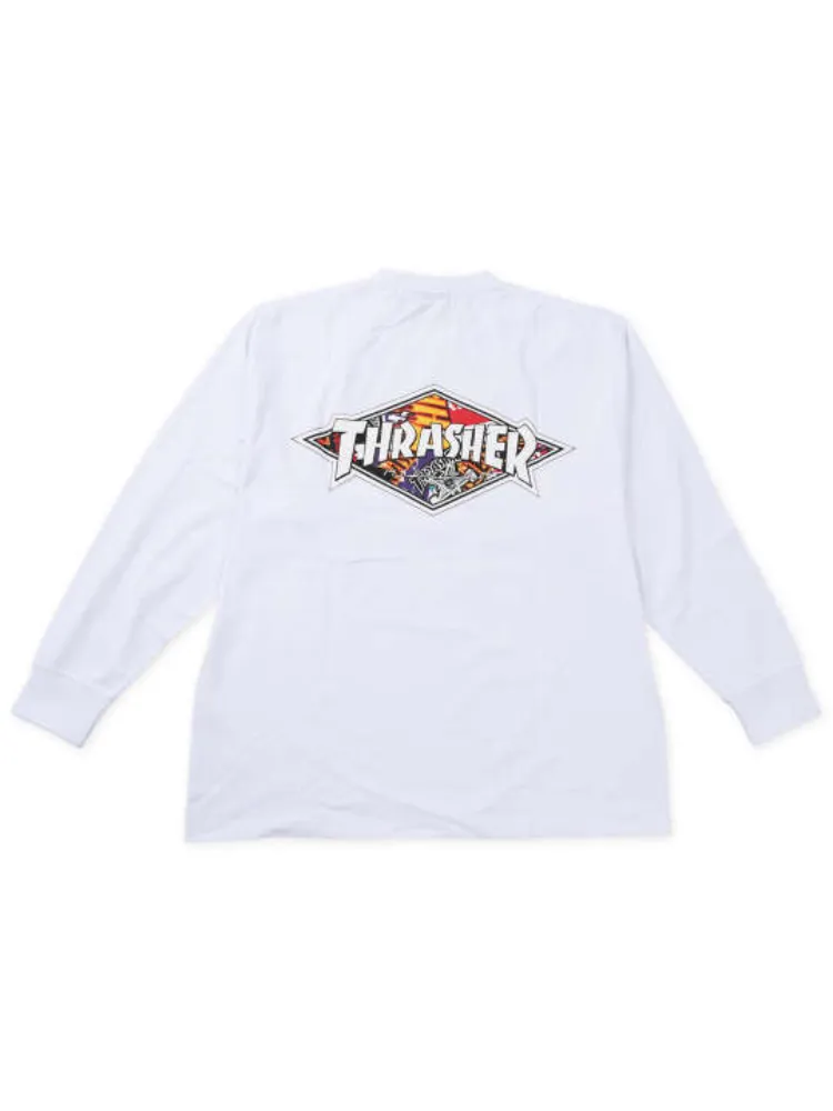 スラッシャーのダイヤモンドロゴをプリントし、スケーターカルチャーを象徴するデザインに仕上げたロンT。