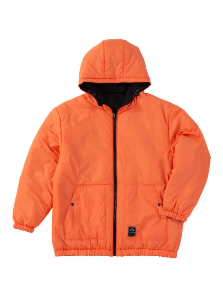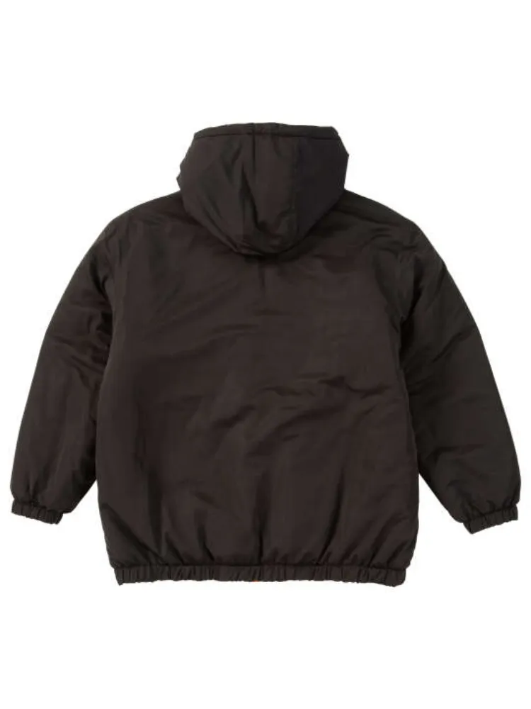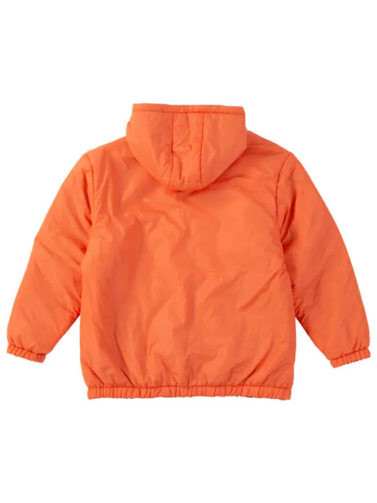 中綿/リバーシブル/裾・袖口ゴムシャーリング/フルジップ/スタンドカラー/胸・サイド・内ポケット/フード(調節有)/ワッペン