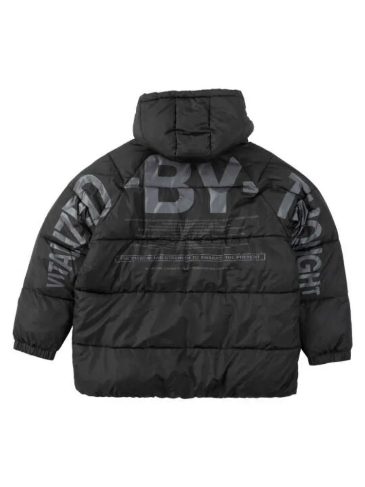 フルジップ/スタンドカラー/フード(調節スピンドル有)/サイドポケット/袖口・裾ゴムシャーリング/中綿/ラグラン袖/プリント