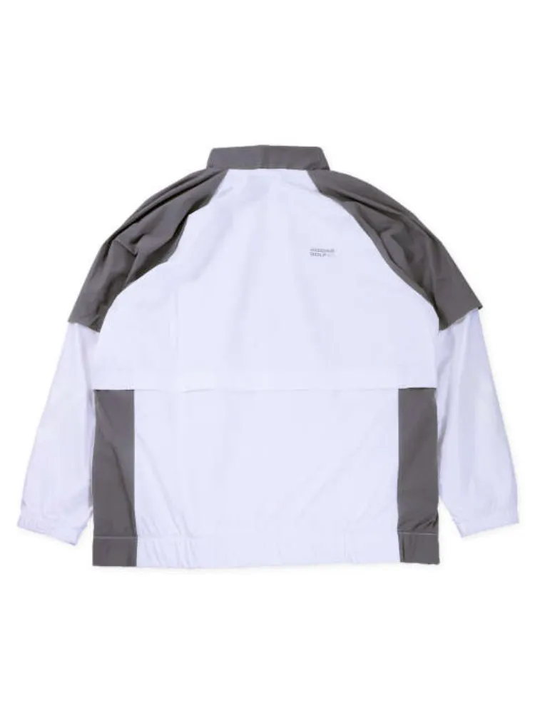 撥水を備えた機能性と、配色切り替えが映えるデザインで、ゴルフはもちろんデイリーユースにも最適な一着です。