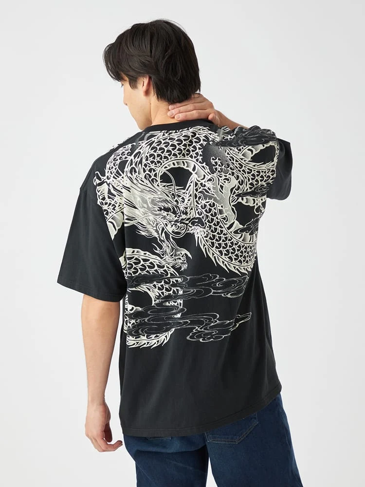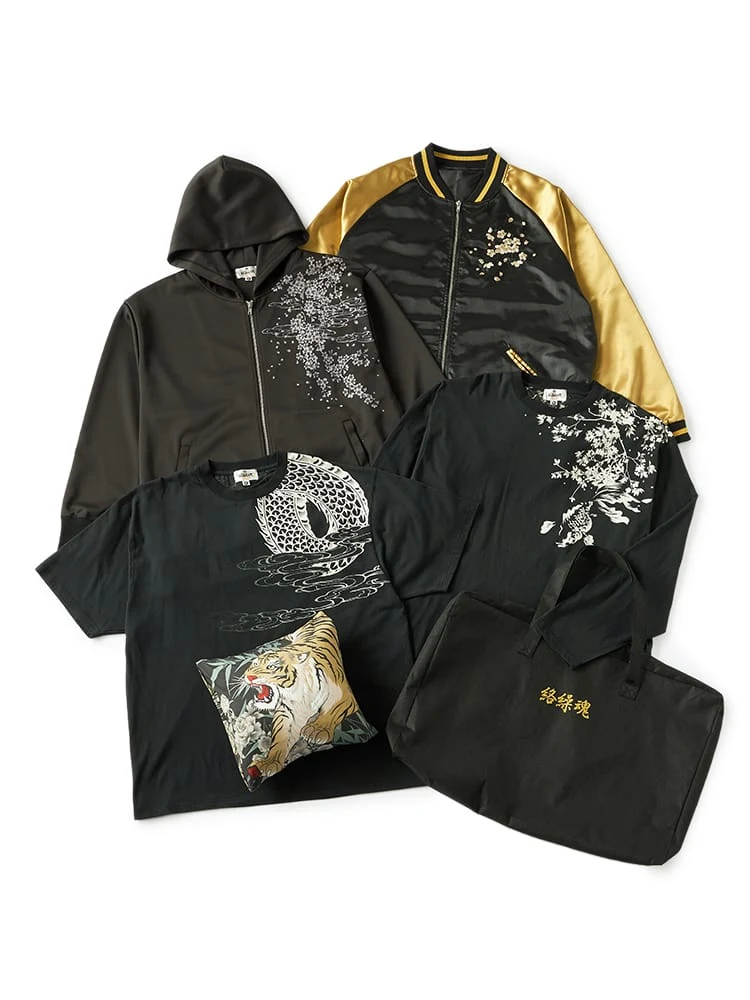 和のエッセンスを効かせた、龍や虎、桜の花などをモチーフにデザインされたウェアを、コーディネートで取り入れられるようセットにしたお得な福袋です。ブルゾンやTシャツ、ボトムに至るまで、贅沢な5点のウェアをセットにしました。