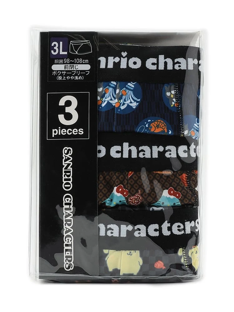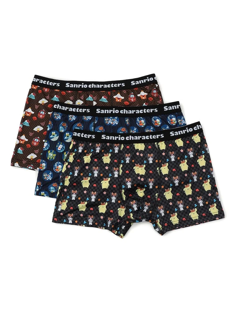 『Sanrio Characters』のボクサーブリーフを、3枚セットにしたお得な福袋が登場。ハローキティやポムポムプリン、タキシードサムなど、その他にも沢山の人気キャラクターがデザインされた賑やかな総柄タイプです。