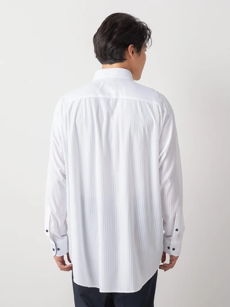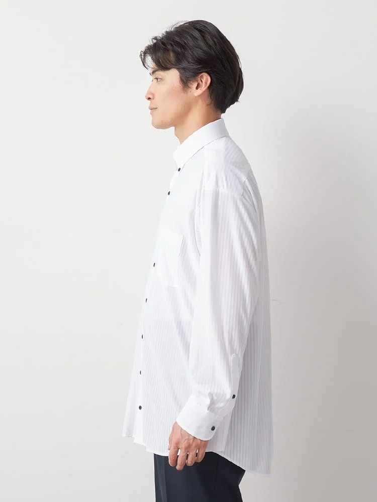 大きいサイズ メンズ 【完全ノーアイロン】長袖アイシャツ 別生地切替 ボタンダウン WEB専用(ホワイト)