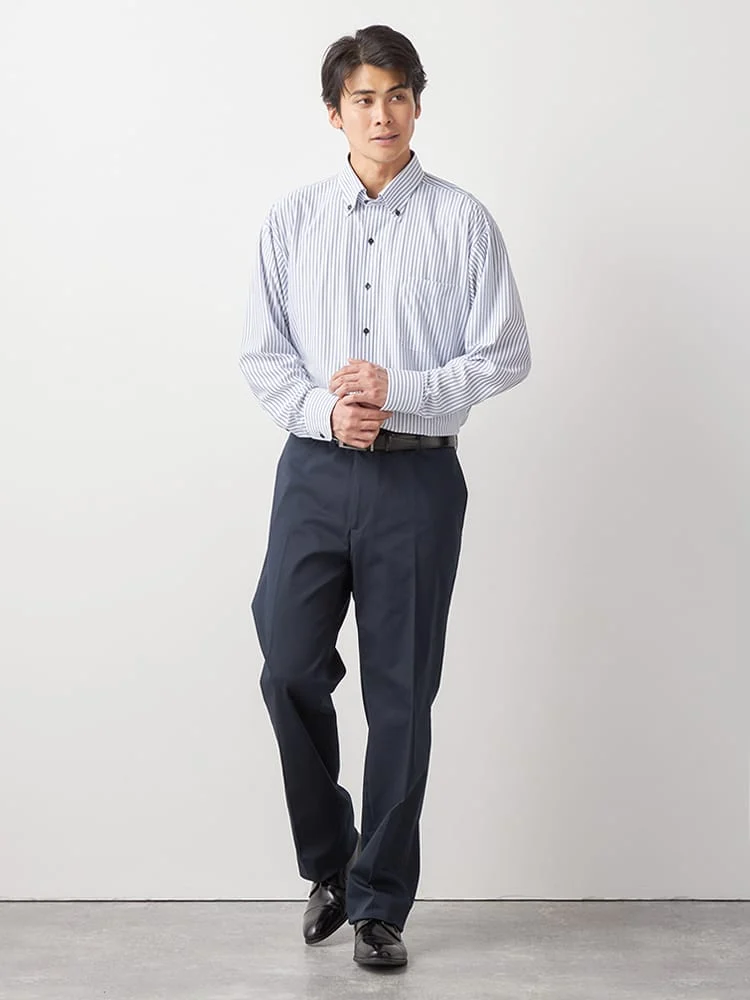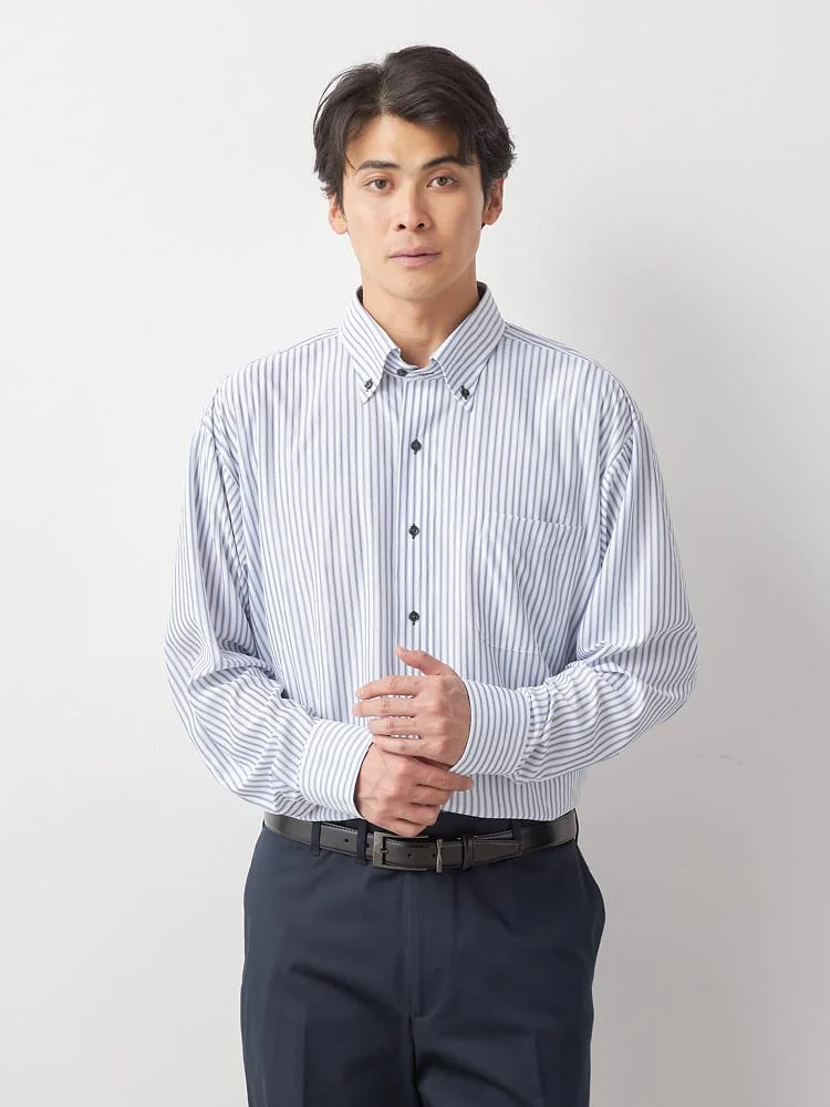 【完全ノーアイロン】長袖アイシャツ別生地切替ボタンダウン