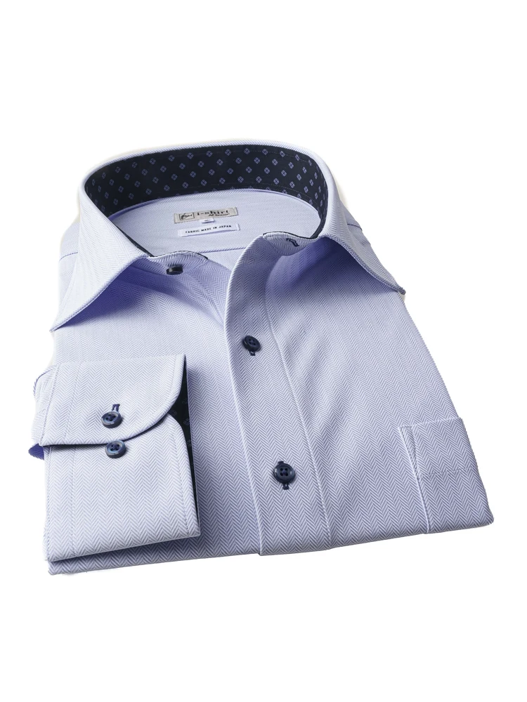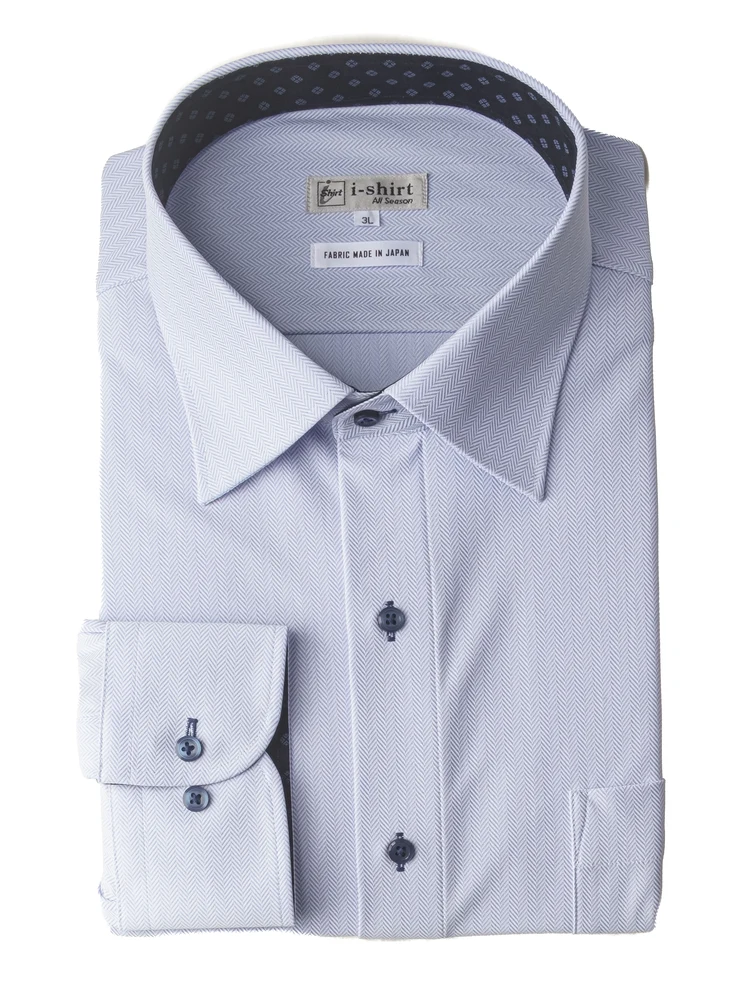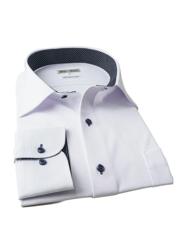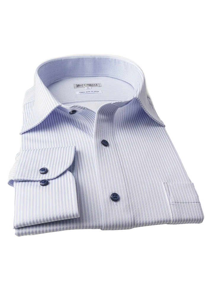 【完全ノーアイロン】長袖アイシャツ別生地切替セミワイドWEB限定ホワイト/ブルー