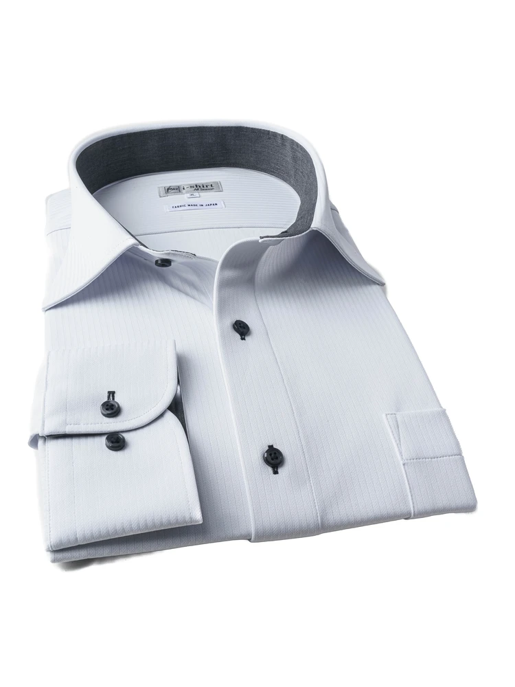 【完全ノーアイロン】長袖アイシャツ別生地切替セミワイドWEB限定ホワイト/M.グレー/サックス