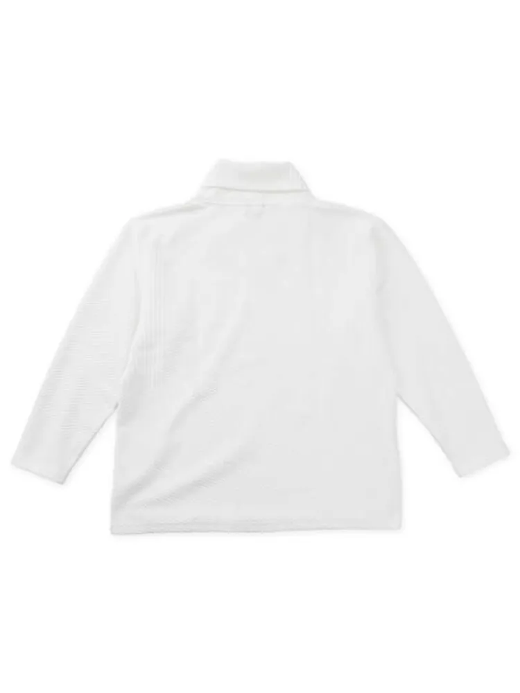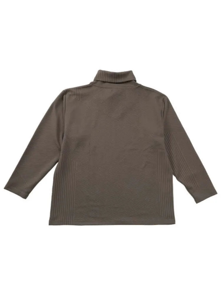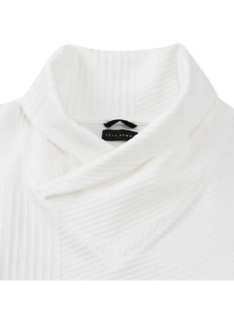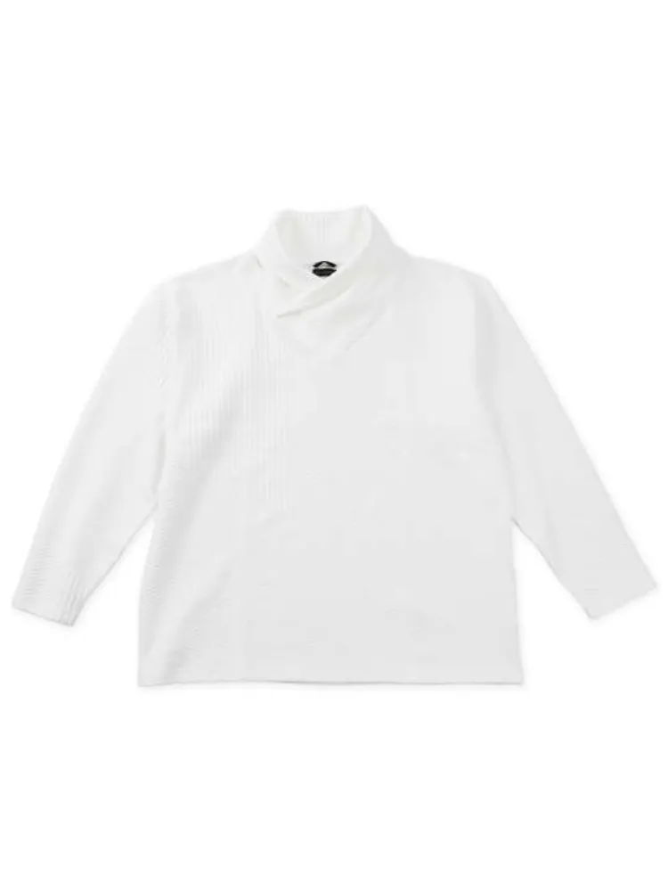 特殊な糸の構造の高品質生地を使用し、立体的なボリュームネックが印象的なデザインロンT。