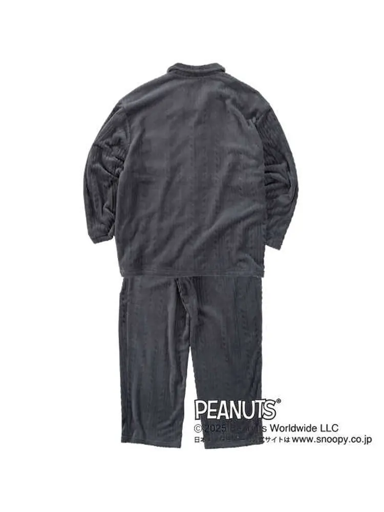 【PEANUTS】ふわもこシャツパジャマ *カタログ商品 大きいサイズ(C.グレー)