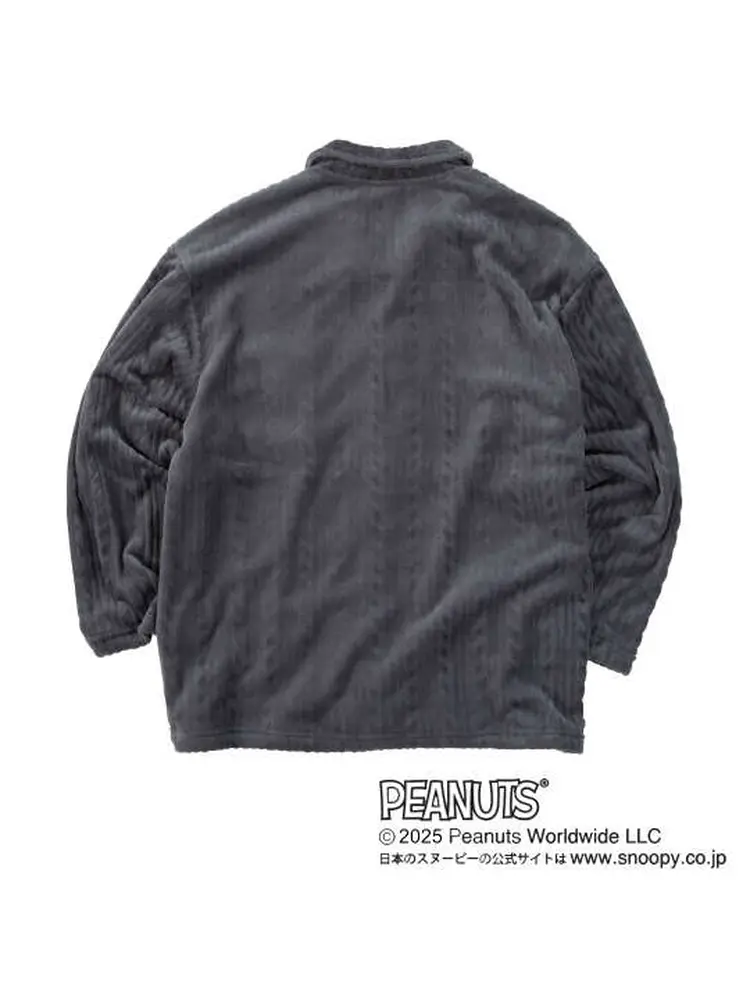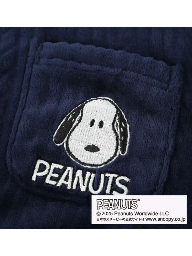胸元に施されたワンポイント刺繍や、ボタンにあしらわれたスヌーピーの足跡が、愛らしさとぬくもりを感じさせます。
