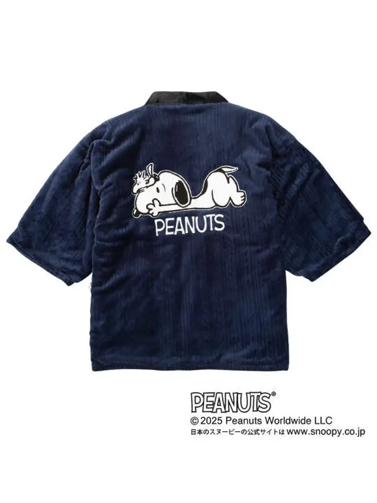 【PEANUTS】ふわもこ半纏 *カタログ商品 大きいサイズ(ネイビー)