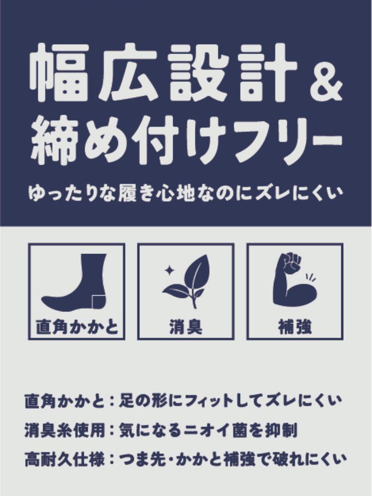 幅広直角大寸クルー丈ソックス29-31cm(ブラック)