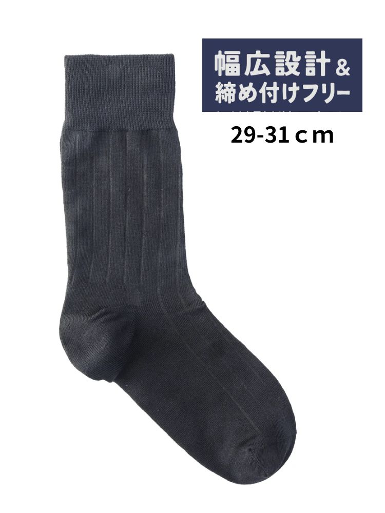 大きいサイズ メンズ 幅広直角大寸クルー丈ソックス29-31cm(ブラック)