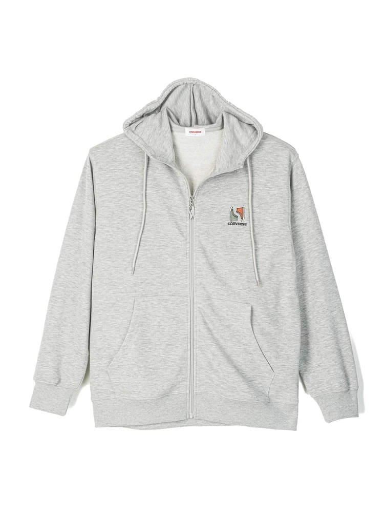 【CONVERSE(コンバース)】裏毛胸刺繍フルジップパーカー(M.グレー)