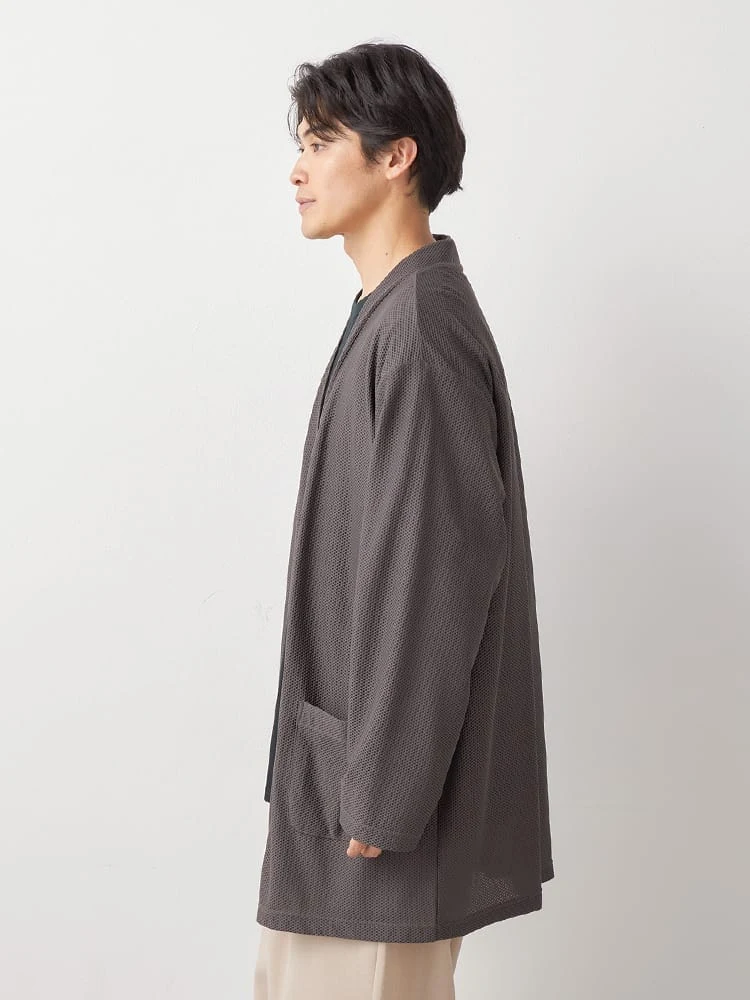 カジュアルにもきれいめにもお使いいただける、シンプルなガウンカーディガン。