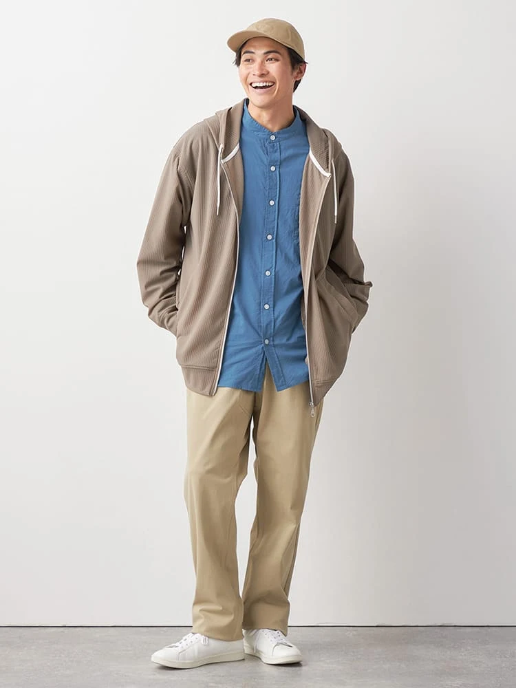 トップスとしてはもちろん、ライトアウターとしてもお使いいただける、ジップアップパーカー。