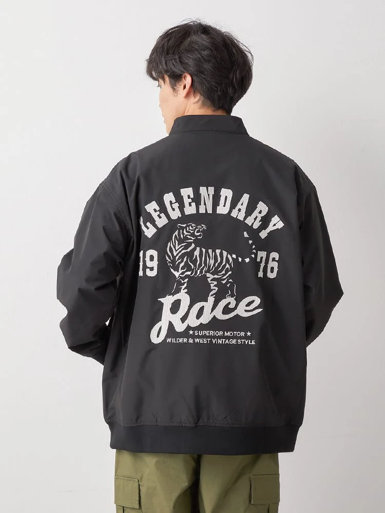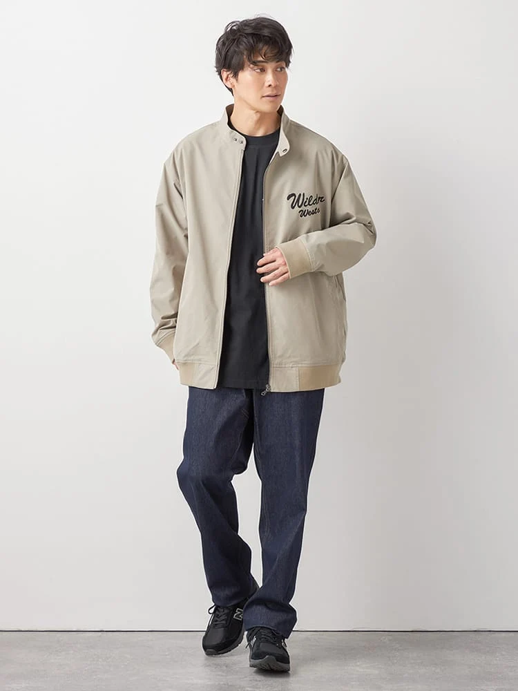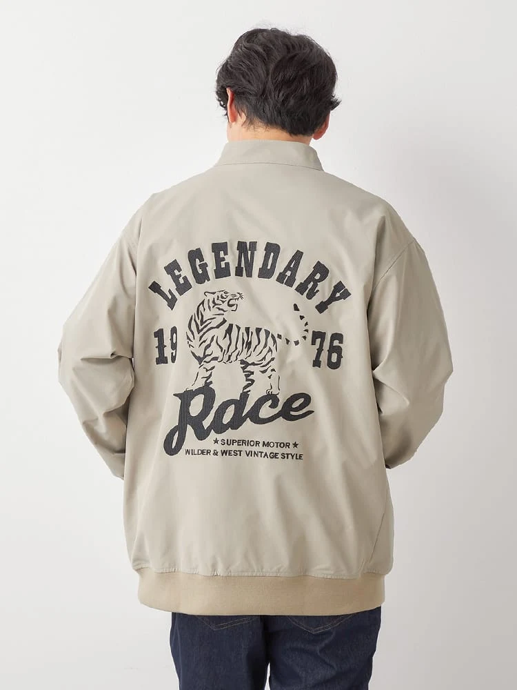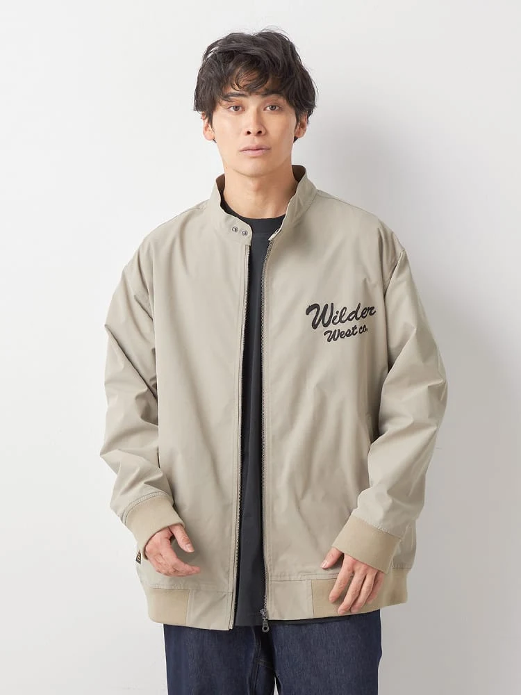 大きいサイズ メンズ 【WILDER&WEST】ビンテージ刺繍ライダースブルゾン(ベージュ)