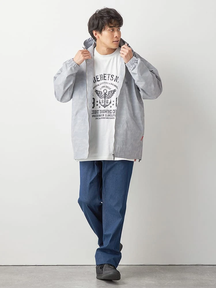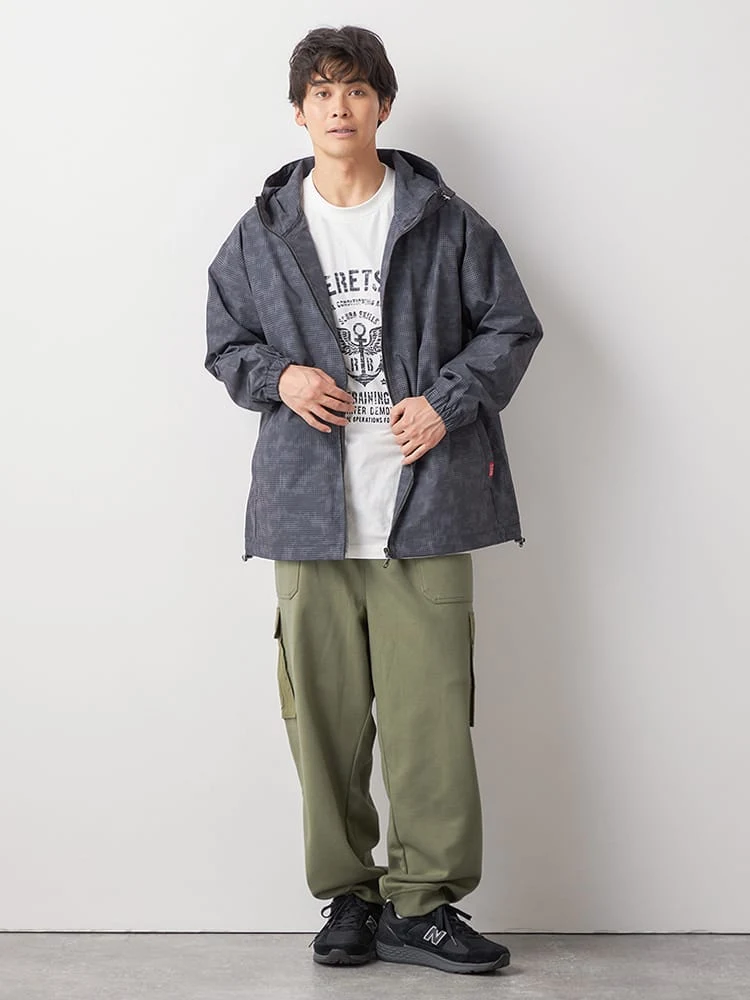大きいサイズ メンズ 【RED BERETS(レッドベレー) 】ドットカモフラージュフードアノラック(ブラック)