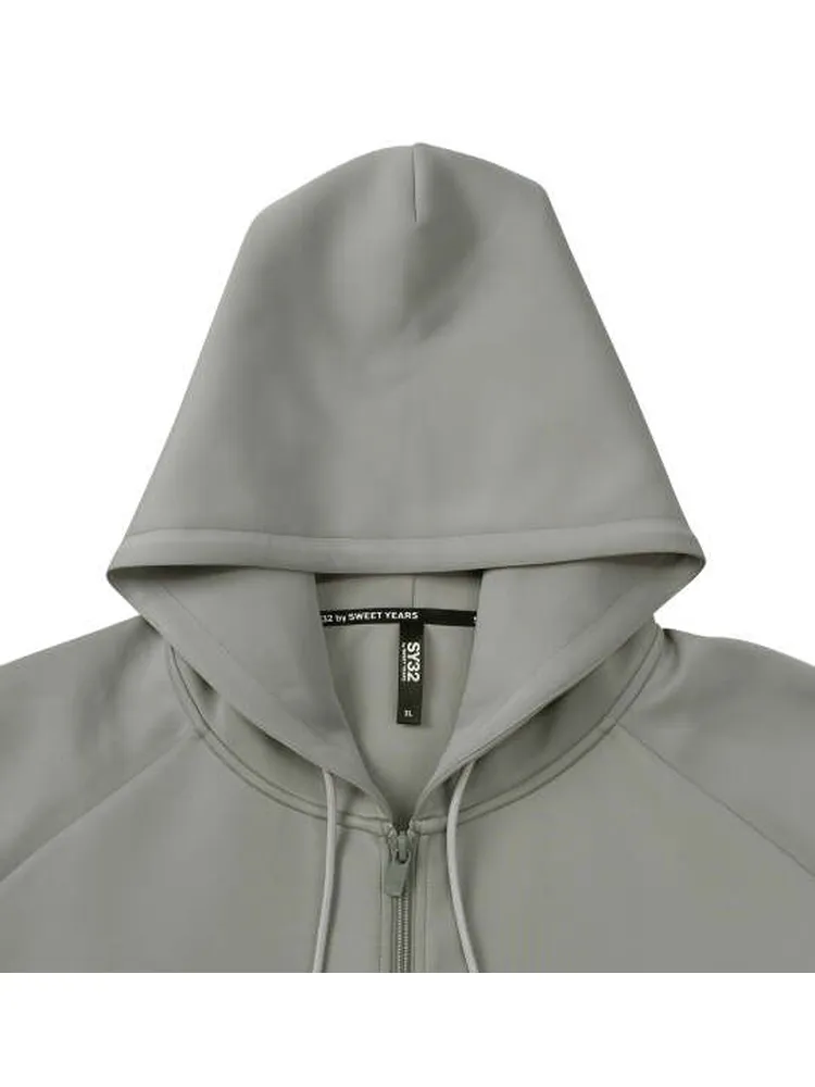 しっかりとした生地感でシワになりにくいダブルニット素材を使用したフード付きパーカー。