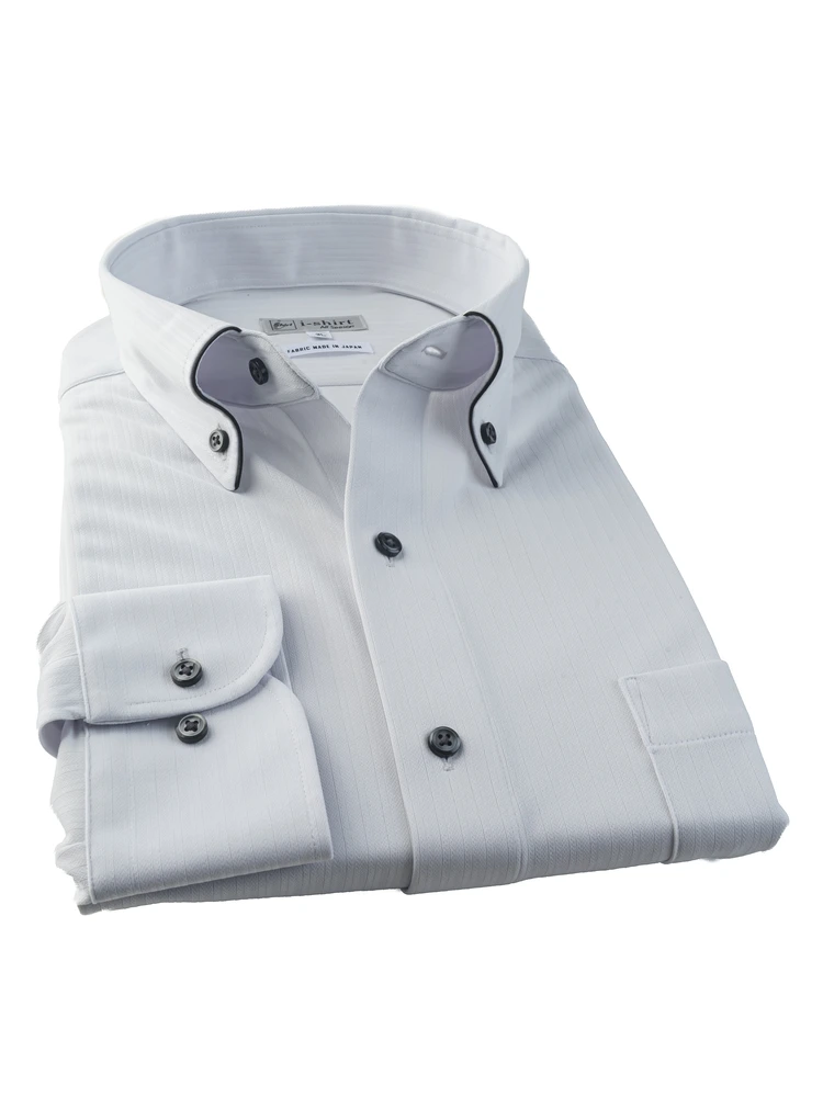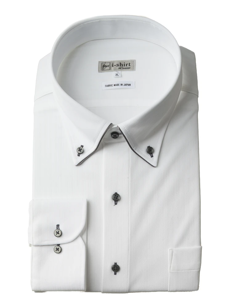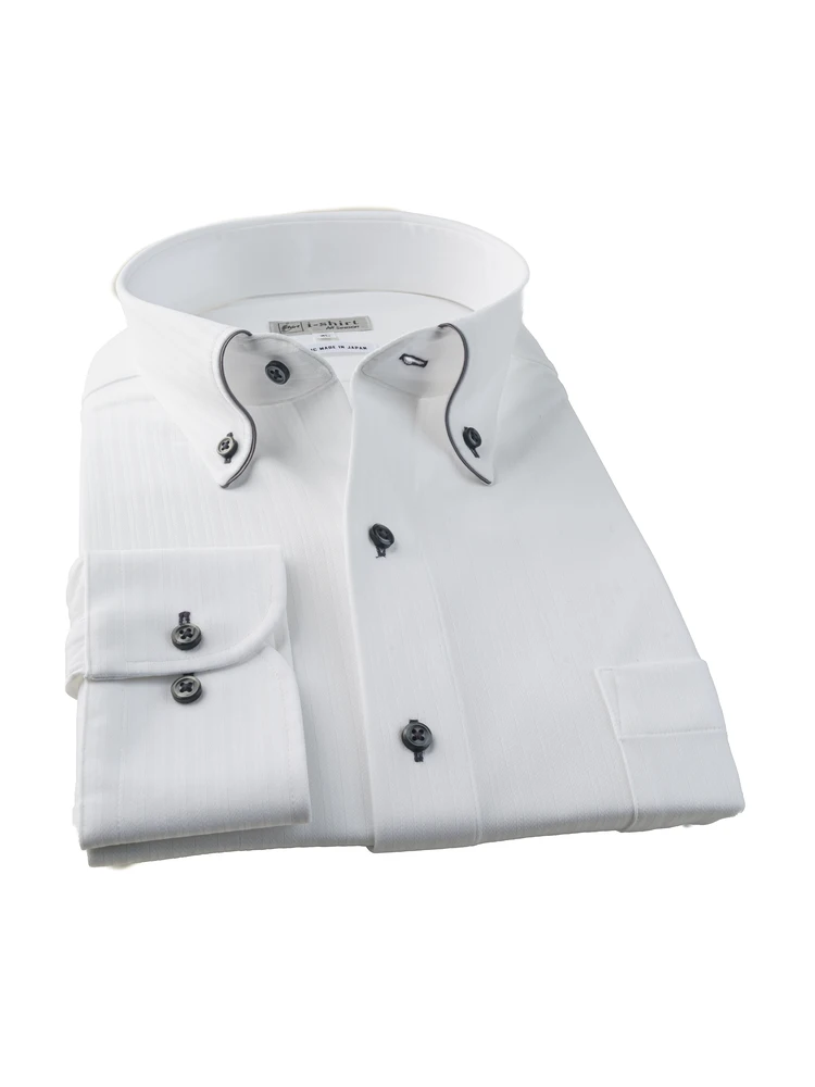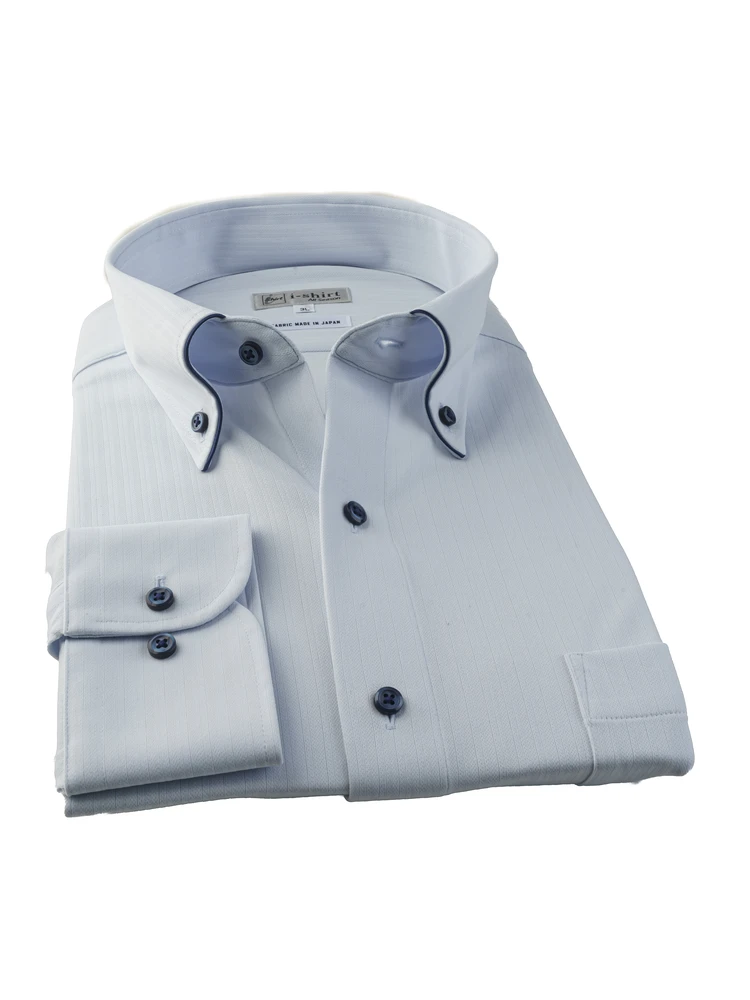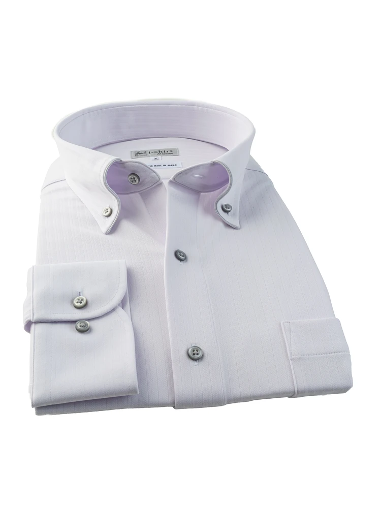 【完全ノーアイロン】長袖アイシャツストライプ調ボタンダウン