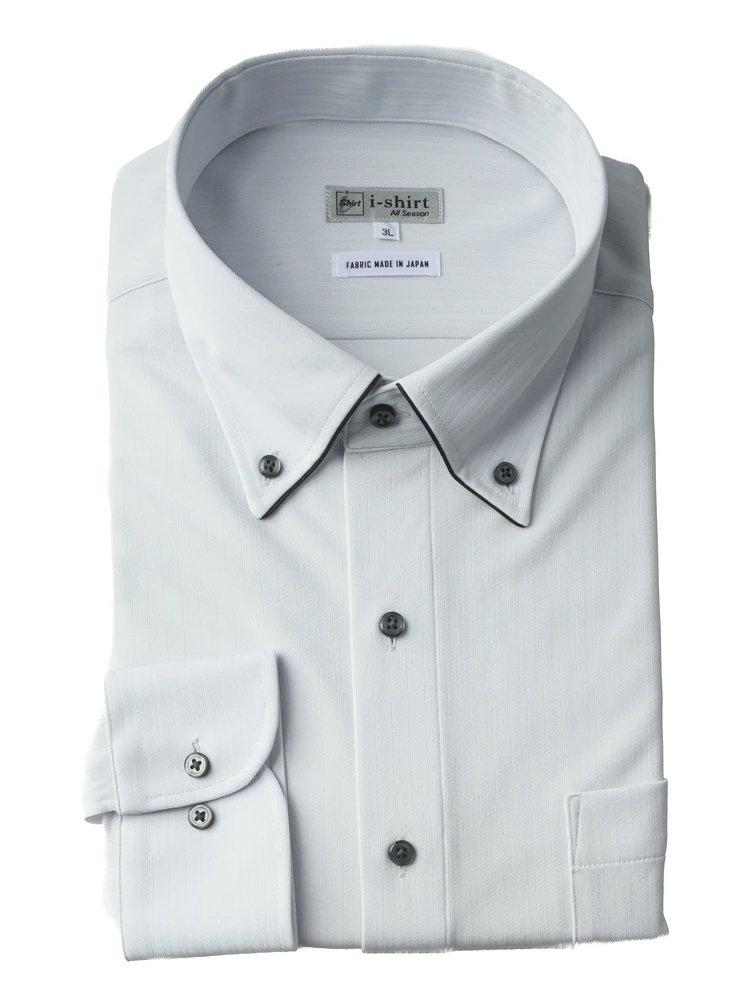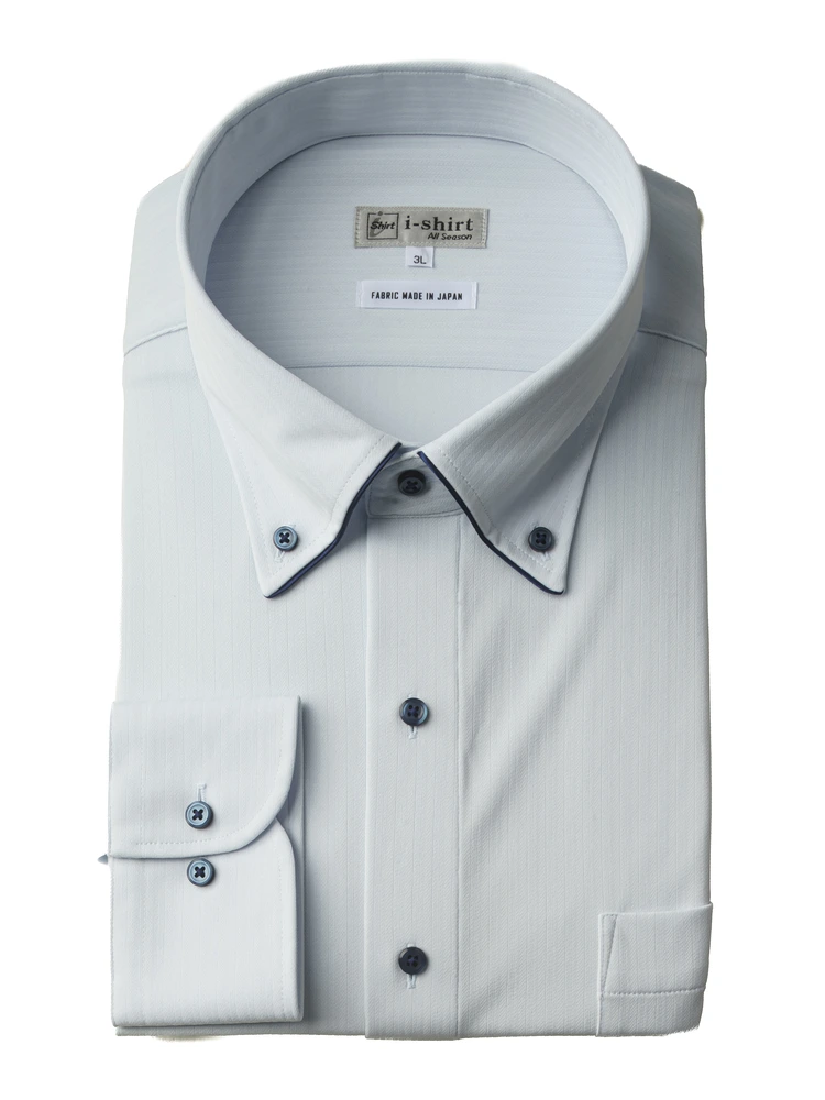 大きいサイズ メンズ 【完全ノーアイロン】長袖アイシャツ ストライプ調 パイピング ボタンダウン(M.グレー)