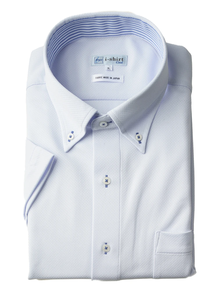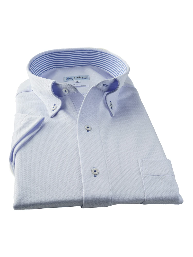 【完全ノーアイロン】半袖アイシャツ別生地切替DRYAIRボタンダウン