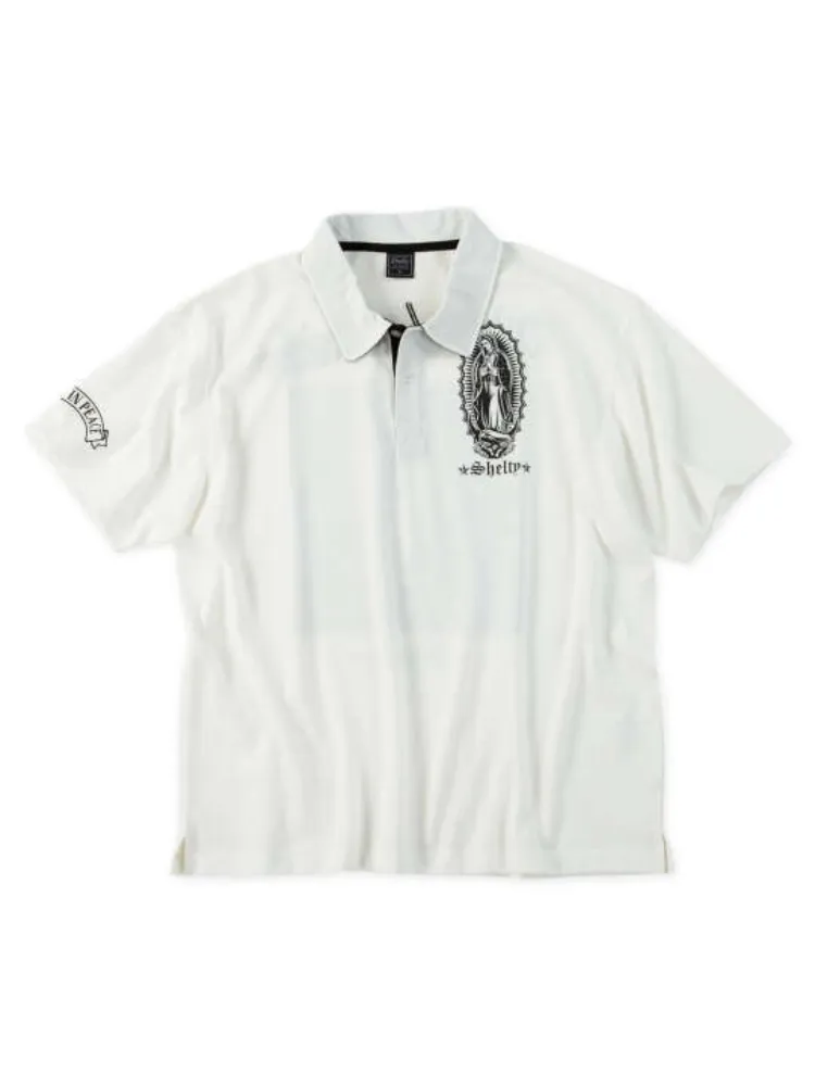 大きいサイズ メンズ 【SHELTY(シェルティ)】鹿の子刺繍&マリアプリント半袖ポロシャツ *カタログ商品(オフホワイト)