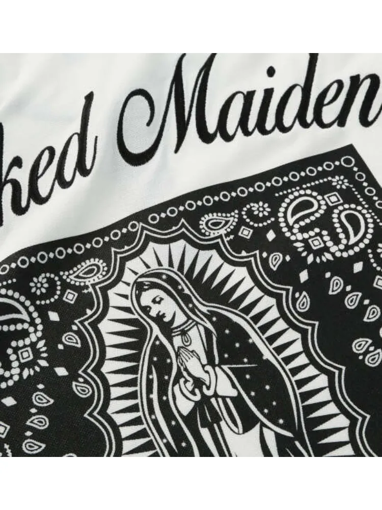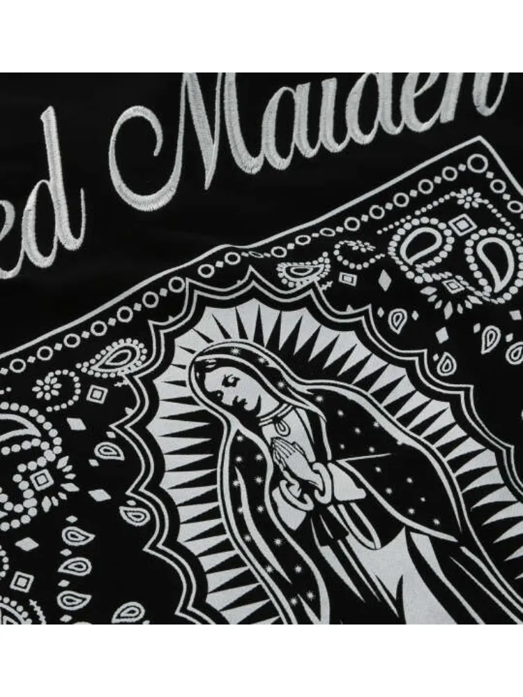 聖母マリアのモチーフをプリントと刺繍で落とし込み、コーディネートの主役になる一着です。