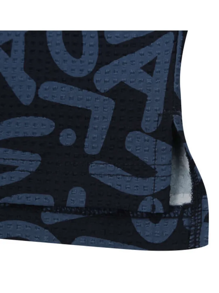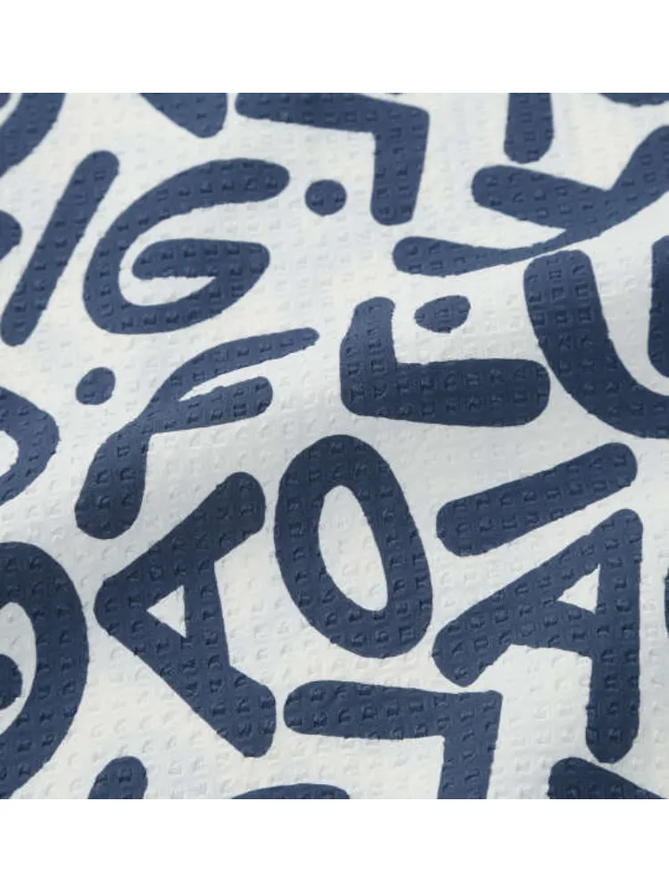 吸汗速乾、接触冷感、UVカット機能を備えた、サッカー生地のゴルフシャツ。
