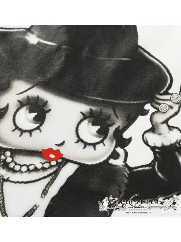 モノクロのレトロ調デザインで描かれたベティちゃんをフロントにプリントした、存在感のある一着。