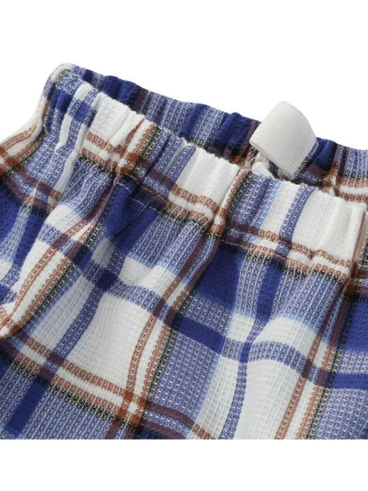 大きいサイズ メンズ 【marie claire homme(マリクレールオム)】さらテックワッフルチェック半袖パジャマ *カタログ商品(ブルー)