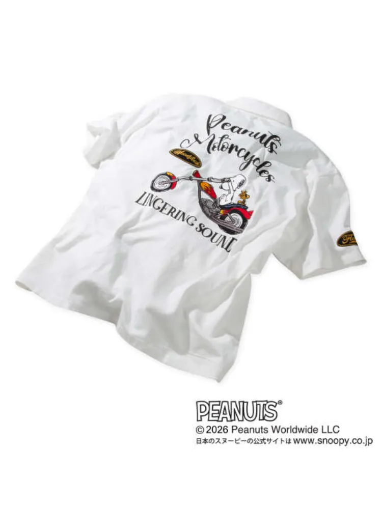 バイクとスヌーピーを細部まで丁寧な刺繍で表現し、確かな風格の中に遊び心をプラス。