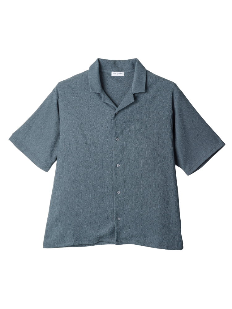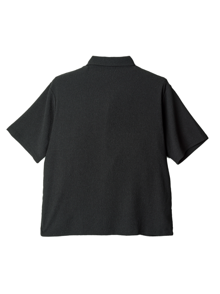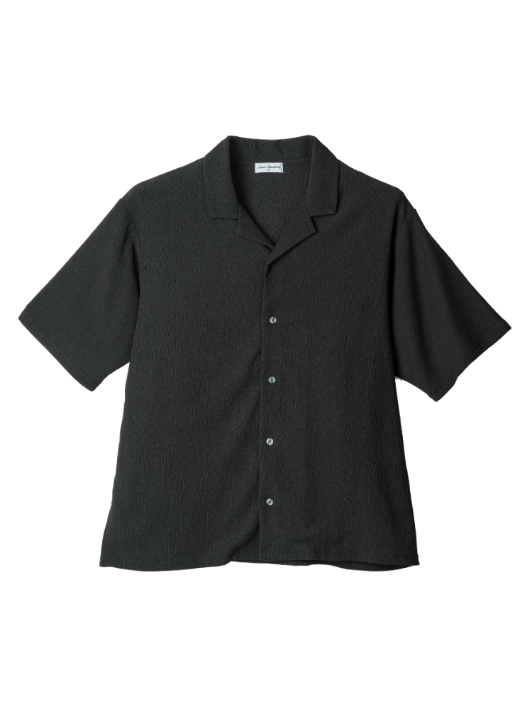 【ルイシャブロン】カット楊柳オープン半袖シャツ(ブラック)
