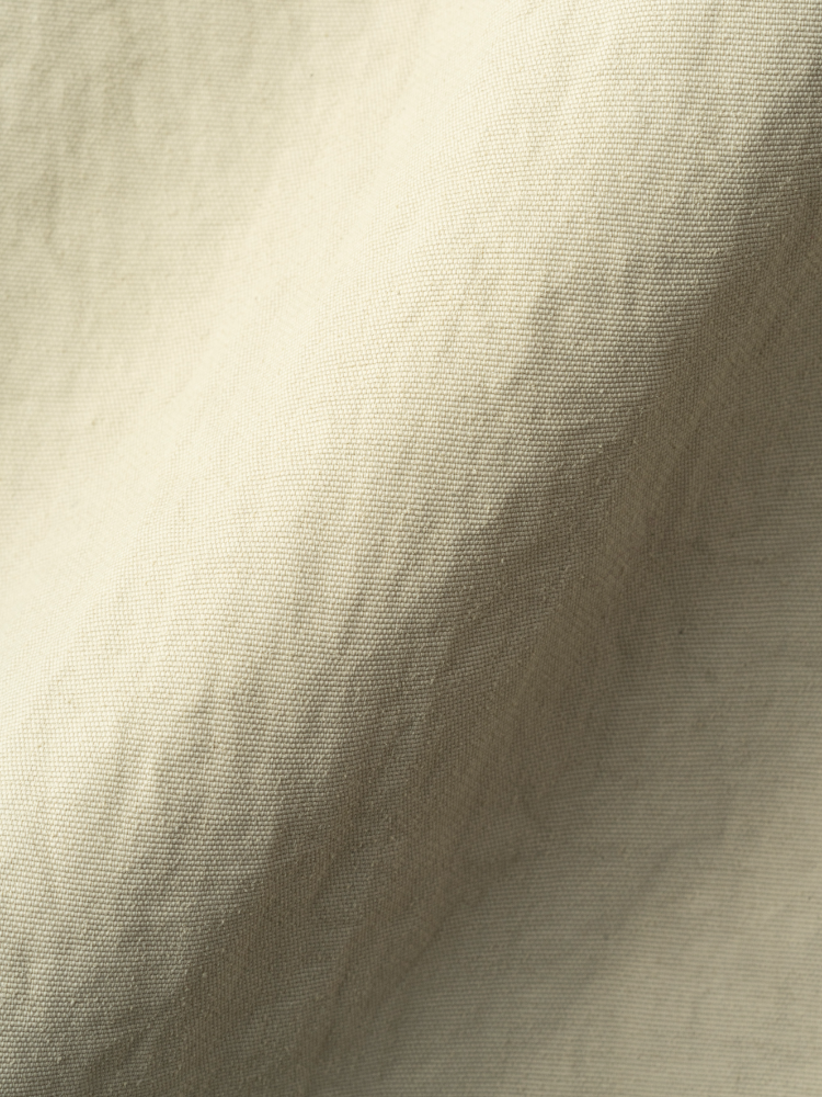 ナイロン特有のシワ感が特徴の生地に、タッサー織りによる綿のような風合いと、肌にまとわり付きにくい清涼感を加えた、快適な着心地の素材です。