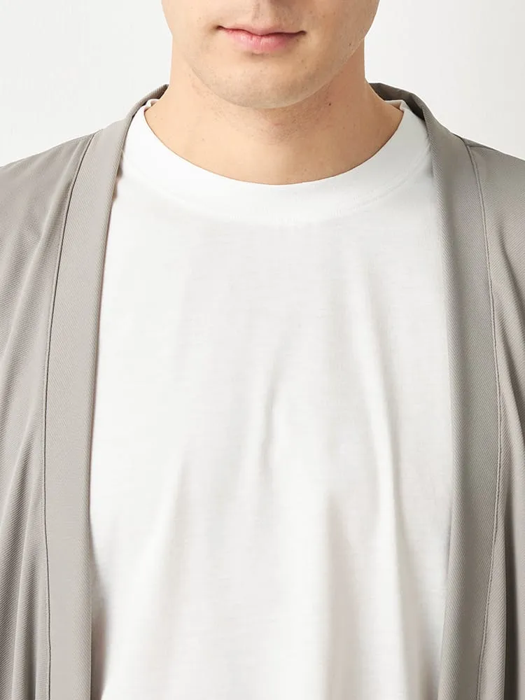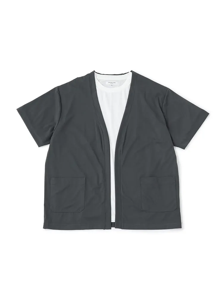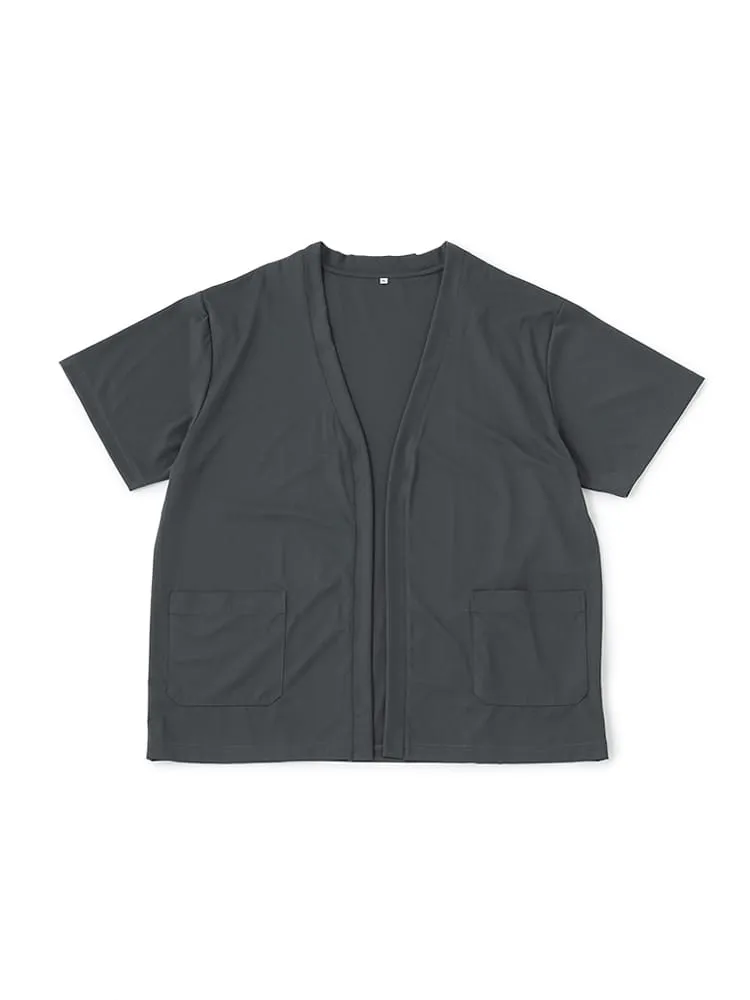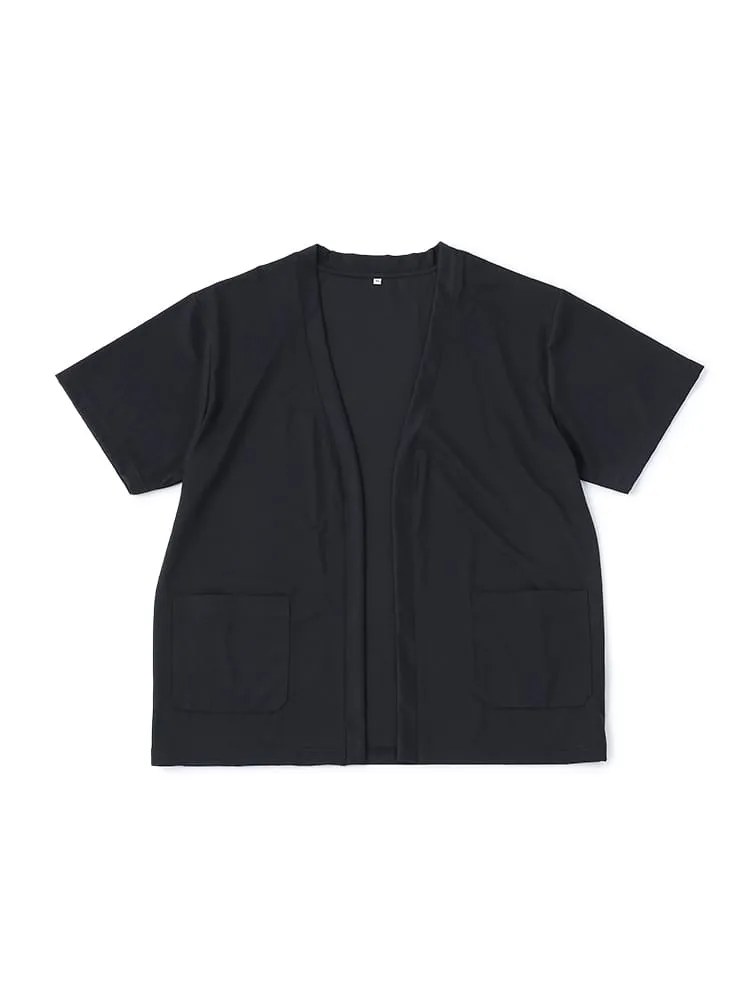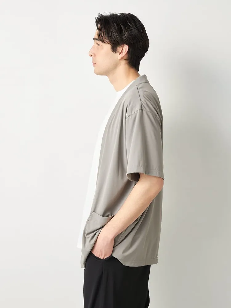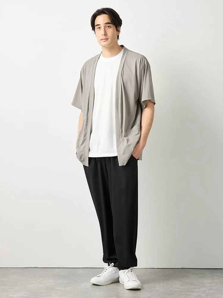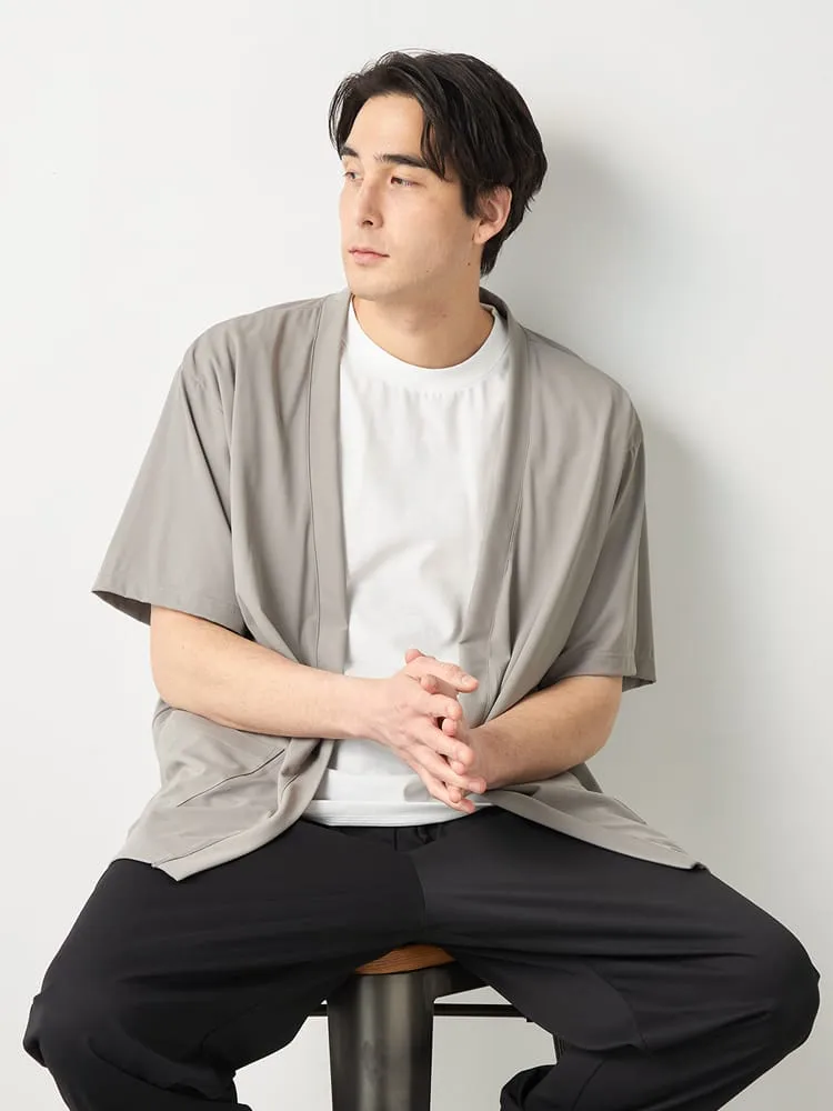 大きいサイズのスーパーストレッチファイバーモードカーデアンサンブル。冷感性のあるナイロン繊維とスパンデックス繊維を合わせた高伸縮ニットカーデとTシャツのアンサンブルセット(TシャツはTC)。高い伸縮性で抜群の動きやすさも特徴です。Tシャツの上からでもひんやり感じる冷感性とコーディネート完結なセットアイテムというのも魅力。セットアップパンツもあり、ワンマイルアイテムとしても使えます。首裏消臭デオドラントネーム装備(Tシャツ側)。